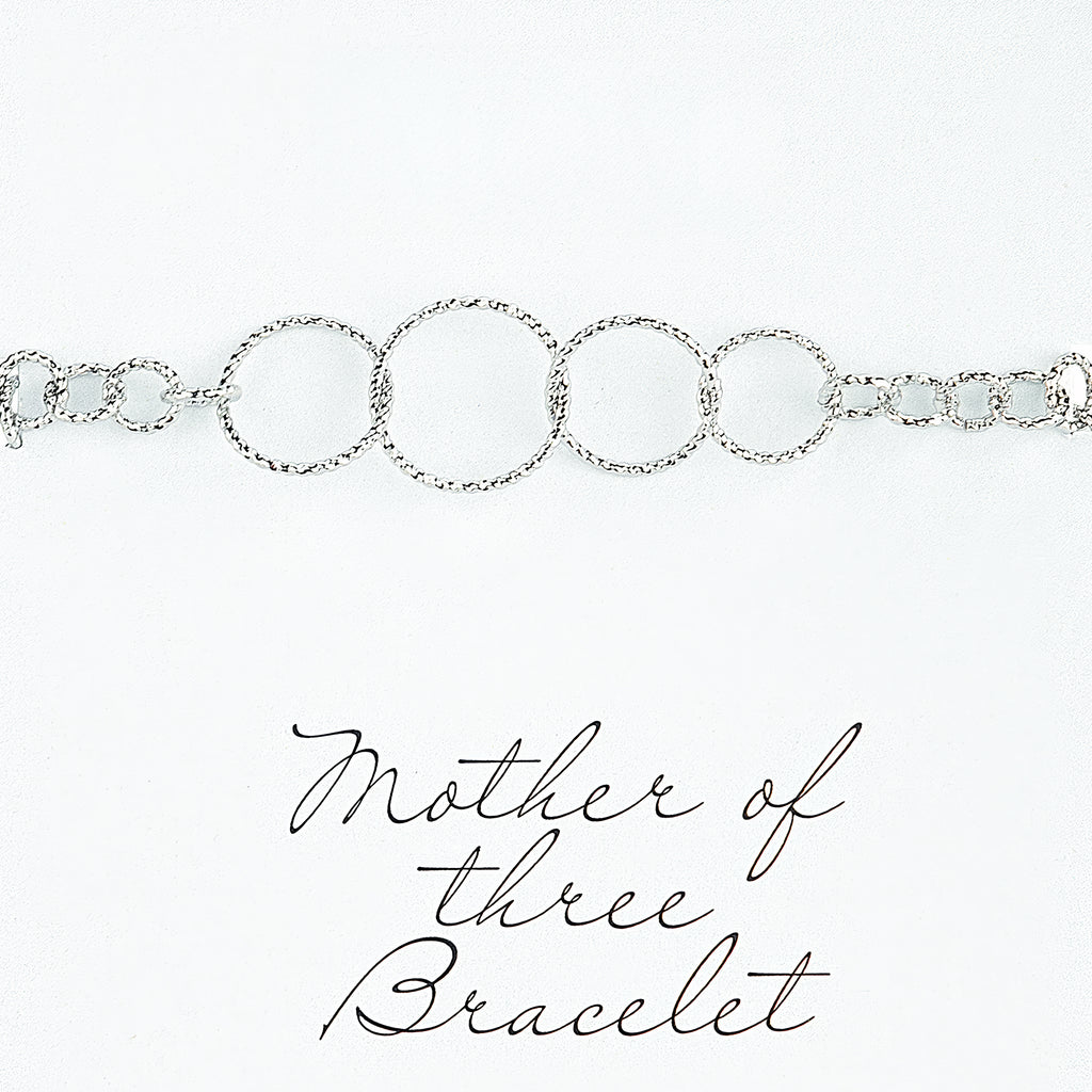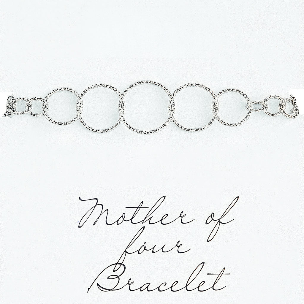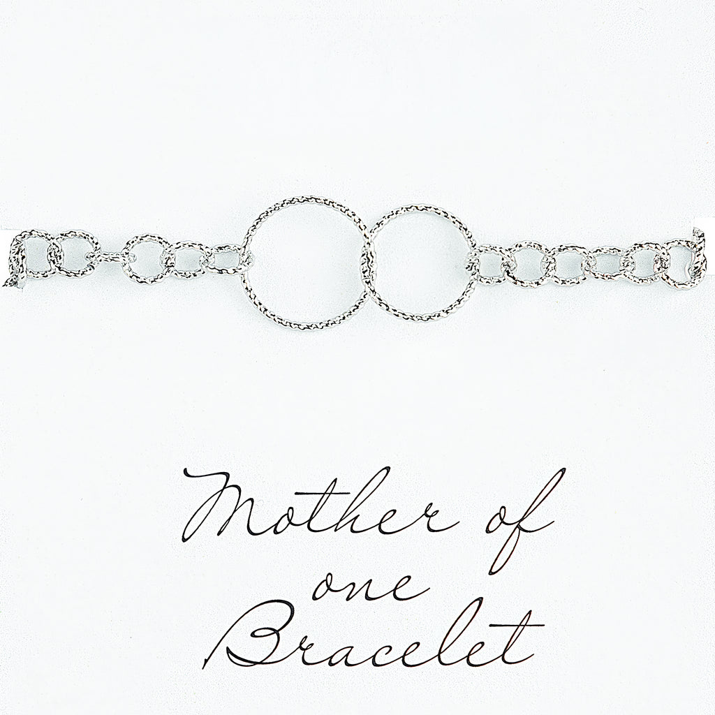 Celebrate the unbreakable bond between a mother and her children with this elegant bracelet. Interlocking silver circles represent mom and up to four children, symbolizing love, unity, and connection.