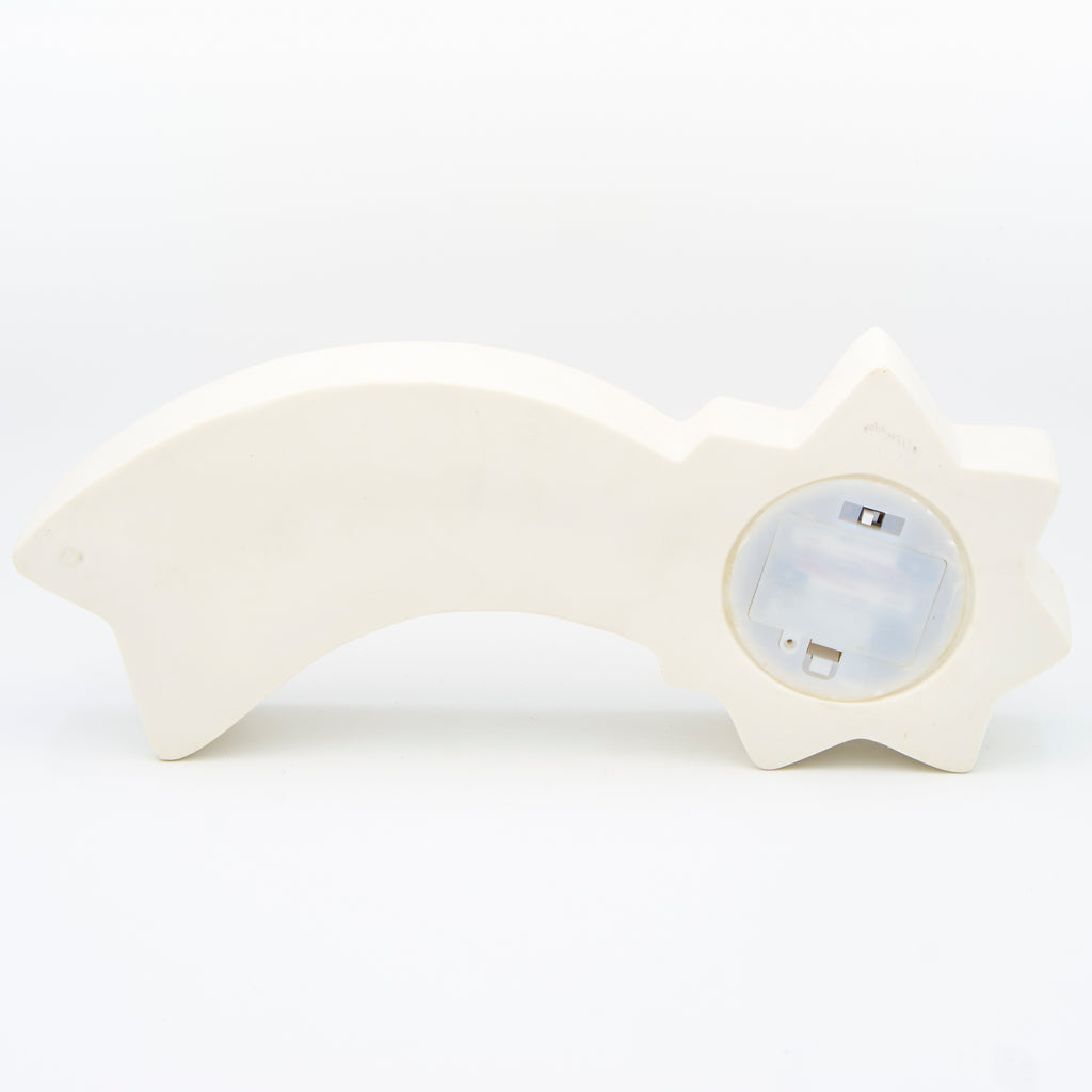 This unique nativity scene is sculpted inside a porcelain shooting star, blending celestial beauty with classic Christmas storytelling. Warm light illuminates the Holy Family, Three Wise Men, shepherds, and animals, while a golden trim and starry backdrop add festive shine. Compact and eye-catching, it's perfect for shelves, mantels, or as a seasonal gift.