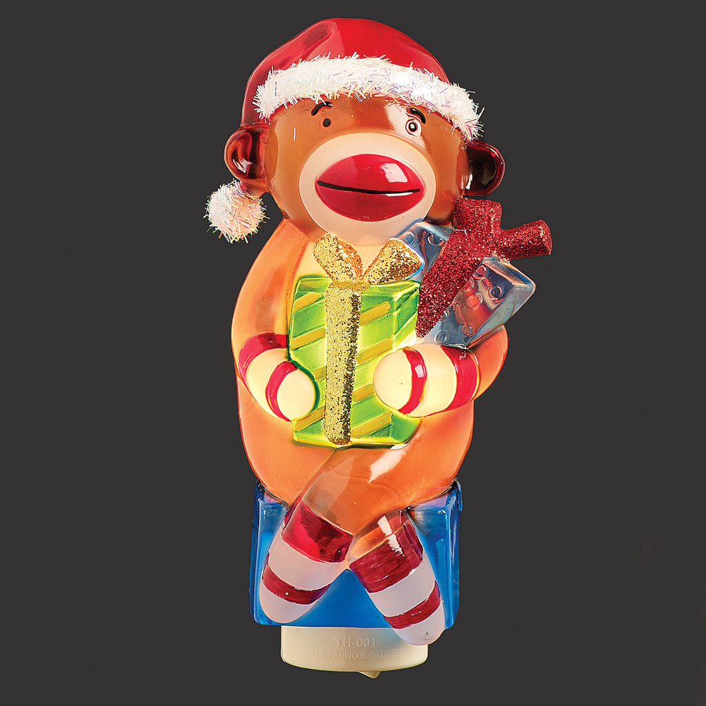 Brighten your holiday season with this adorable Christmas Sock Monkey Night-Light. Sporting a festive hat and scarf, it emits a cozy glow and adds a touch of playful cheer—perfect for kids’ rooms, hallways, or seasonal decor, creating a warm, joyful atmosphere for all to enjoy.