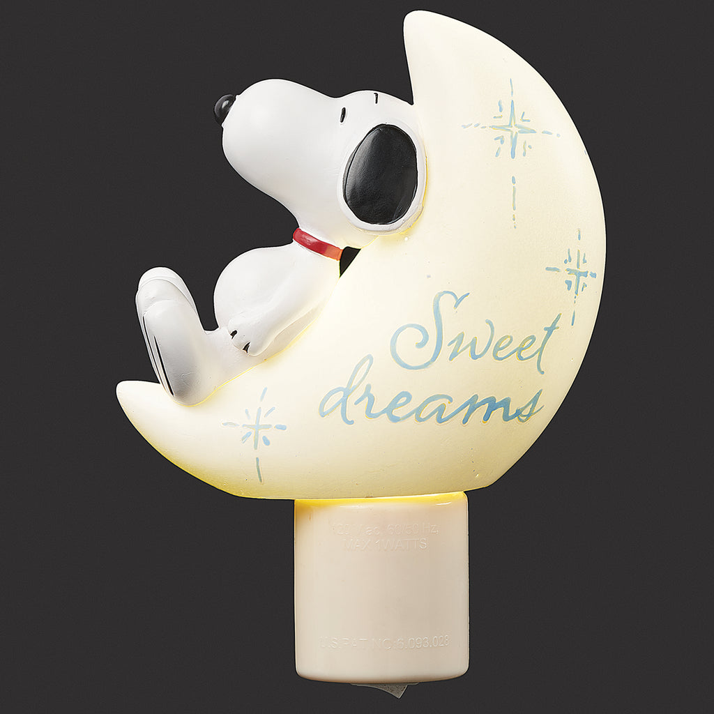 Create a soothing, dreamy ambiance with this charming Snoopy night-light, featuring Snoopy peacefully resting on a crescent moon. Its gentle, comforting glow makes it an ideal addition to kids' rooms, nurseries, or any Peanuts fan’s space, transforming bedtime into a calming, magical experience.