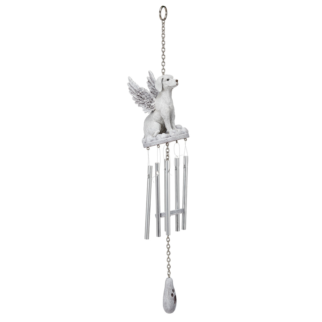 Remember the unconditional love of a loyal companion with this touching dog memorial wind chime. A sculpted dog with angel wings sits above gently ringing chimes, while a dangling pawprint charm adds a meaningful detail. The back of the charm is inscribed with “You left paw prints on my heart,” offering comfort and remembrance. Designed to bring peace and reflection, it’s a heartfelt tribute for gardens, patios, or pet memorial areas.
