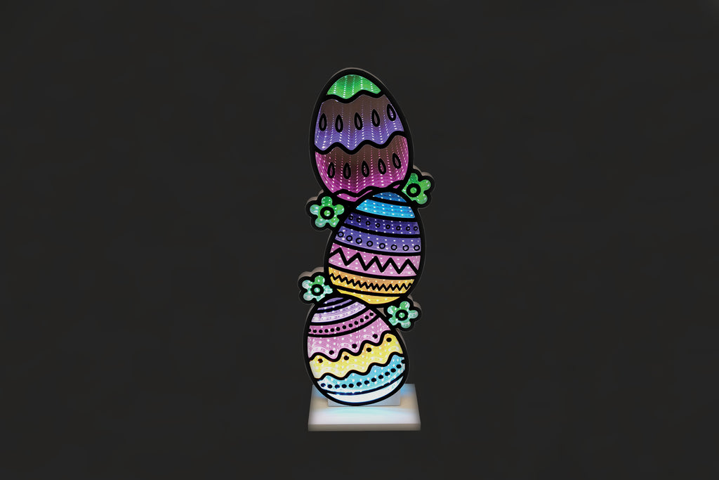 Bring the joy of spring to life with this charming Lighted Easter Egg Tower. Featuring a stack of beautifully decorated pastel eggs, this festive accent glows softly to create a warm, welcoming ambiance. Delicate seasonal detailing and gentle illumination make it a perfect centerpiece for Easter celebrations or springtime décor.