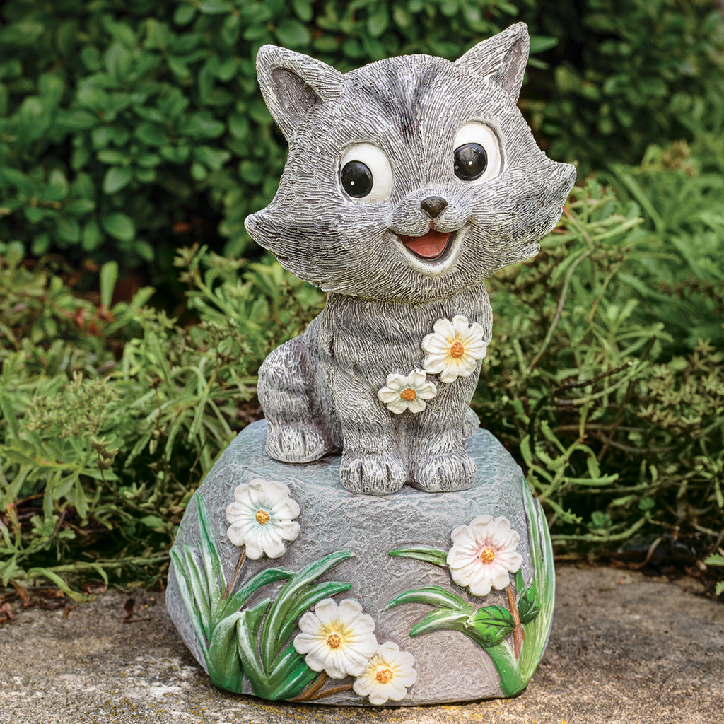 Bring cozy charm to your outdoor setting with this Cat on Stone Garden Statue. Featuring expressive eyes, textured fur, and a flower-accented stone base, it adds a playful yet peaceful touch to flower beds, patios, or entryways. Designed for durability, this statue is a heartwarming accent that blends character with quality craftsmanship.