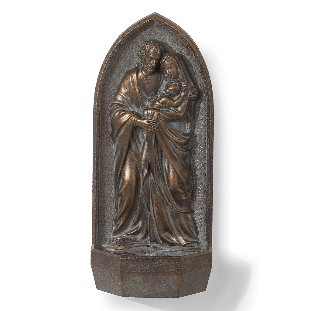 This elegant Holy Water Font features the Holy Family in a beautifully detailed bronze-style design, symbolizing love, unity, and divine protection. Perfect for Catholic homes or prayer spaces, it provides a meaningful way to keep and use holy water as part of daily devotion. A timeless expression of faith and family grace.
