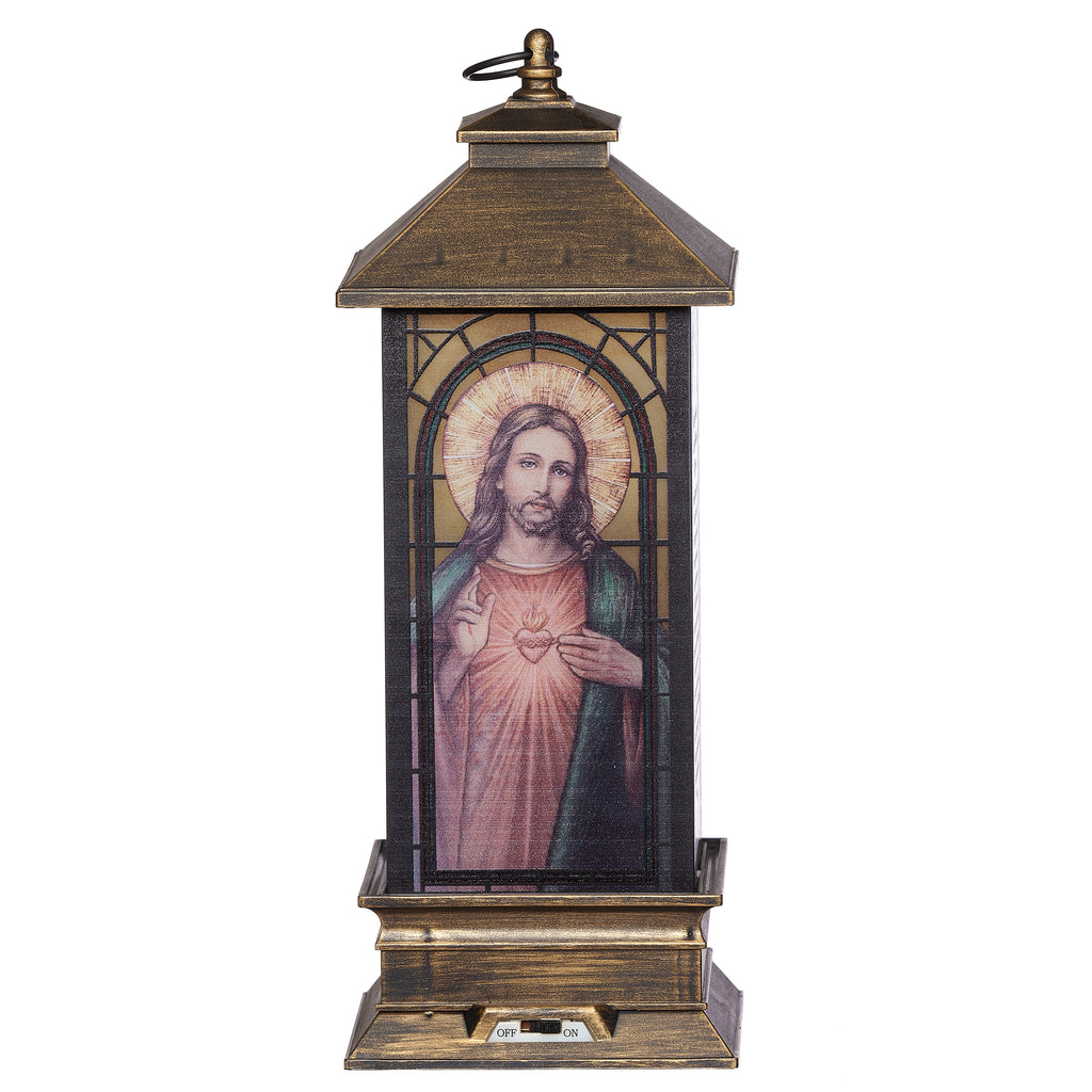 This beautiful lantern features the Sacred Heart of Jesus, radiating peace, love, and divine presence. When lit, it emits a soft, calming glow that enhances prayer corners, altars, or any devotional space. A meaningful addition to sacred settings, it brings comfort, serenity, and faith-filled inspiration to your home.