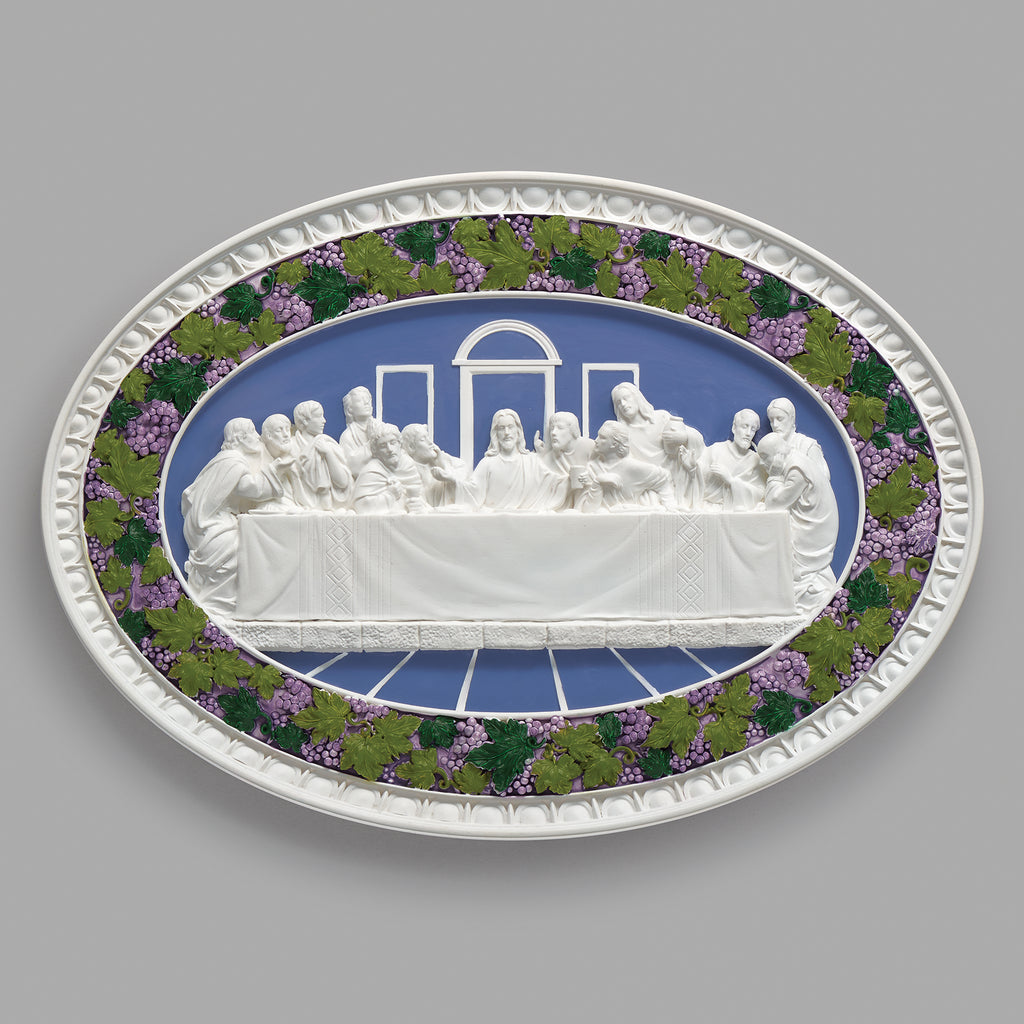 Inspired by the timeless beauty of Della Robbia, this Last Supper wall plaque features intricate relief detail and a reverent design. Perfect for wall display, it captures the solemn moment of Christ’s final meal with His disciples. A meaningful piece for sacramental celebrations, or as a devotional accent in your home.