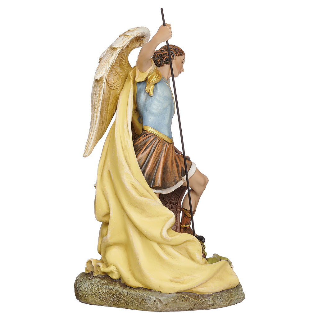 Invoke the strength and protection of St. Michael the Archangel with this striking resin figure. Depicted in dramatic detail, St. Michael stands victorious over evil, sword in hand and wings unfurled. The sculpted base includes a recessed space for a pillar candle (not included), making it a perfect devotional piece for your home, prayer altar, or spiritual space. Hand-painted in vibrant tones, this statue serves as a bold reminder of divine defense and triumph over darkness.
