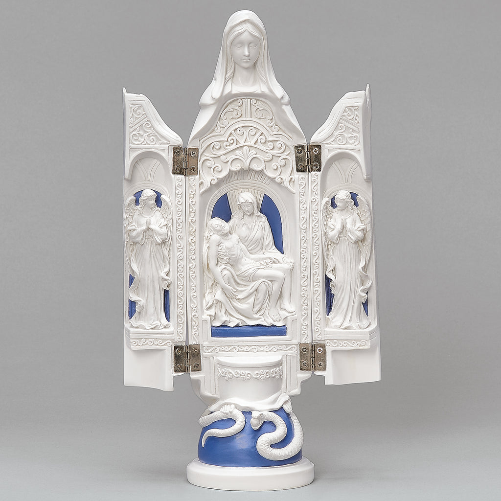 This detailed triptych showcases La Pietà in the classic Della Robbia style, combining three hinged panels into one powerful devotional piece. It's ideal for wall or shelf display, bringing timeless beauty, sorrow, and compassion to any sacred space.