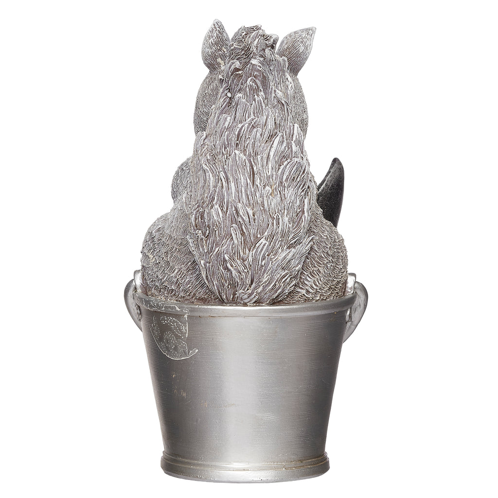 From the Pudgy Pals collection, this charming garden statue features a curious squirrel peeking from a rustic silver bucket. With lifelike detail and endearing expression, it's ideal for both indoor and outdoor settings. A perfect gift for animal lovers or a cheerful accent for any space.