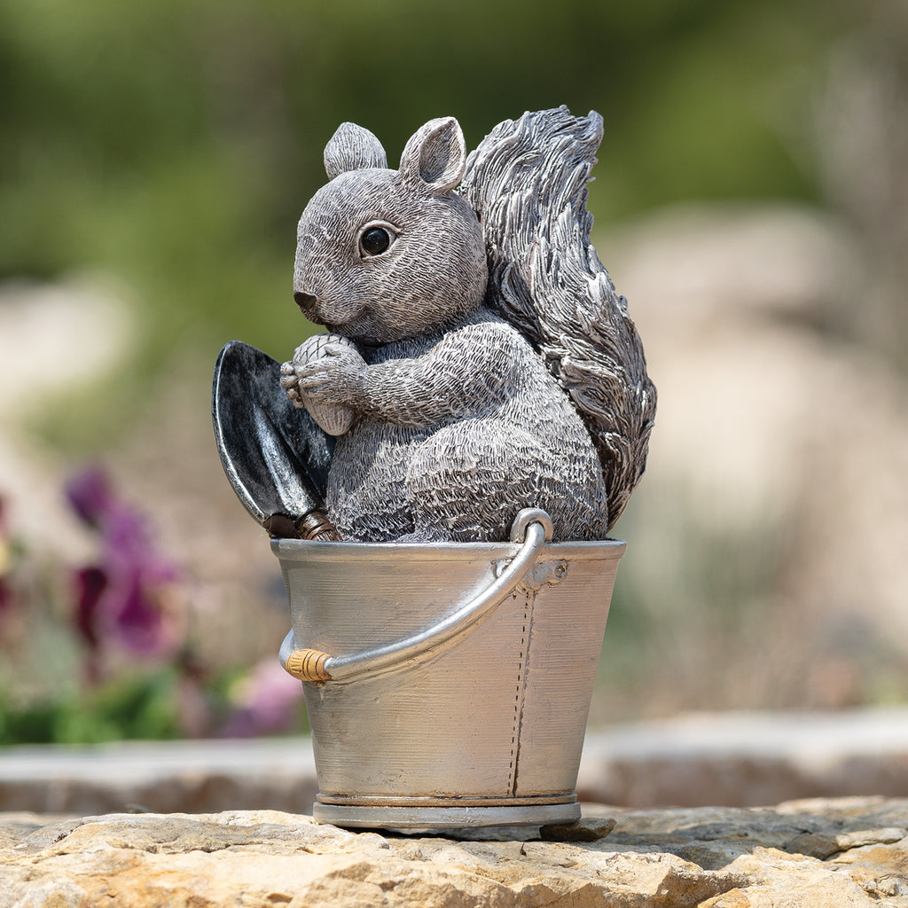 Pudgy Pals Squirrel in Bucket Garden Statue