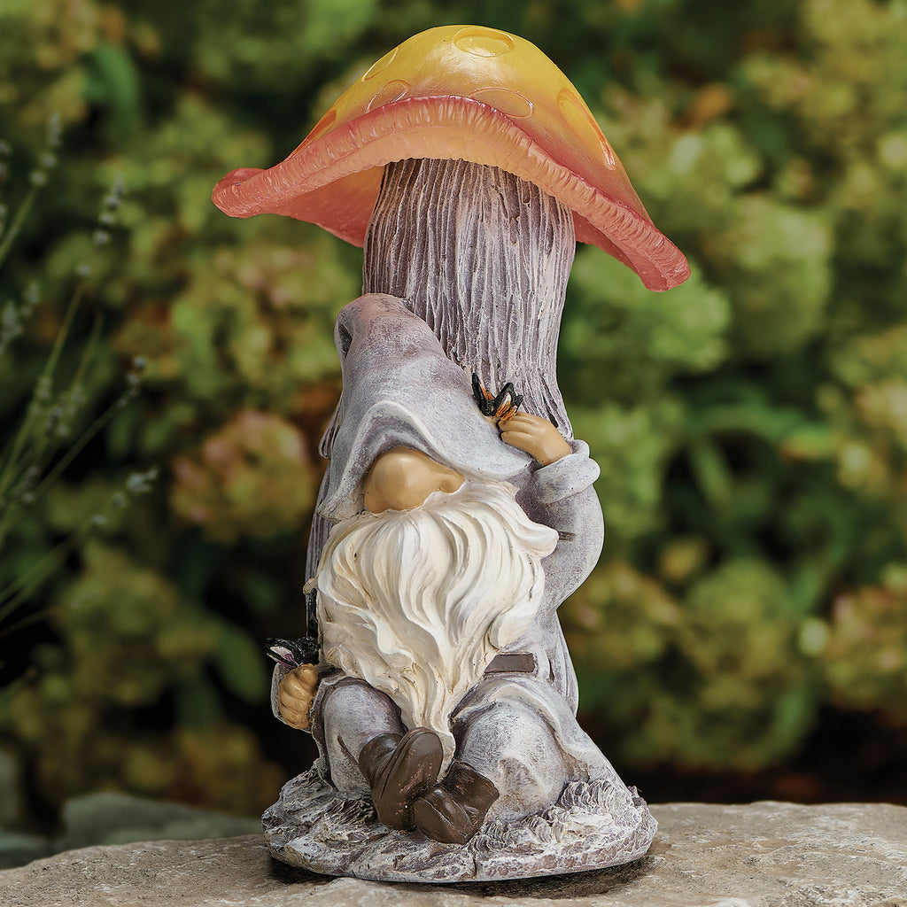Bring a magical glow to your garden with the Solar Gnome with Mushroom Garden Statue. This delightful design features a cheerful gnome resting against a tall mushroom that softly lights up at dusk with solar-powered LED technology. Hand-painted with whimsical detail and crafted from weather-resistant resin, it adds both charm and function to your outdoor décor. Just place it in a sunny spot and enjoy the warm, inviting light that brightens your evenings.