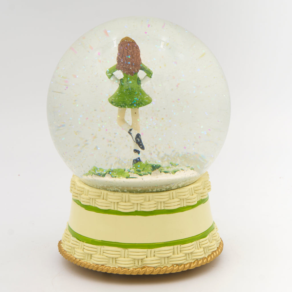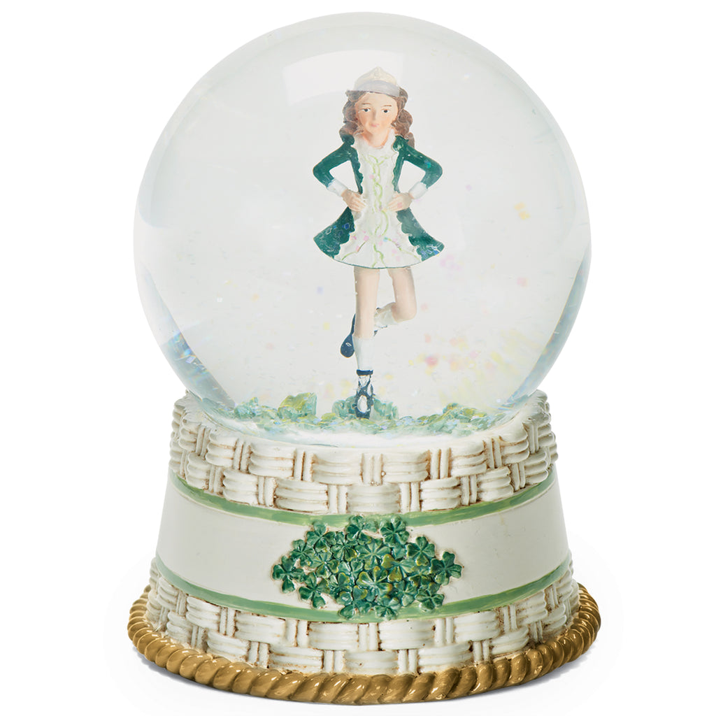 Celebrate the beauty of Irish tradition with this enchanting glitterdome featuring a graceful Irish dancer captured mid-step. When wound, the globe plays “That’s an Irish Lullaby” as shimmering glitter swirls around, creating a magical display. The woven-style base with shamrock detailing adds an extra touch of Irish charm, making it a meaningful keepsake or gift.