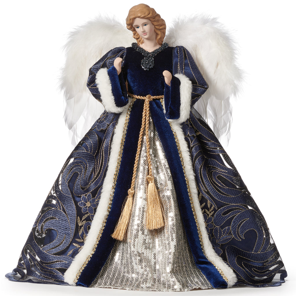Elevate your Christmas tree with timeless beauty using this angel treetopper. Dressed in a flowing navy gown with shimmering silver accents, she brings sophistication, tradition, and grace to your holiday décor. Crafted from fabric with fine detailing, this angel makes a stunning finishing touch to your festive display.