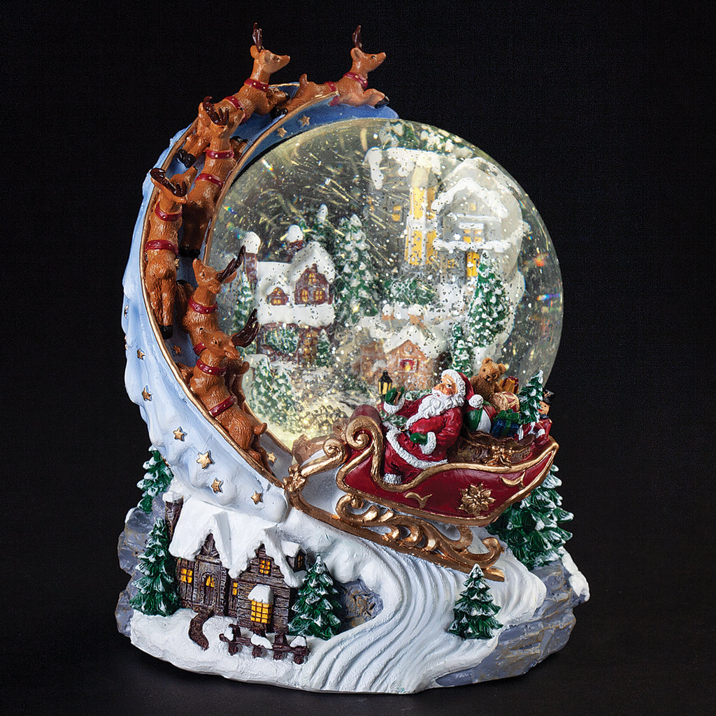Watch Santa and his reindeer circle around a festive town on the outside of this glitter dome. The charming design creates a magical holiday scene, with Santa and his sleigh traveling around the globe, bringing movement, sparkle, and seasonal cheer to your décor.