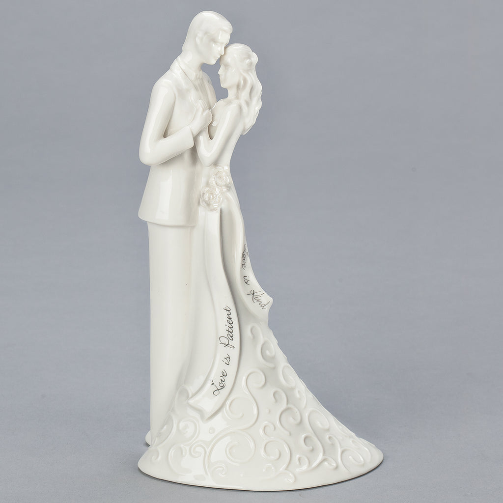 Celebrate your union with this beautifully crafted porcelain wedding cake topper featuring the timeless sentiment "Love is patient, love is kind." Its graceful, romantic design adds classic charm to any wedding, anniversary, or vow renewal cake. A stunning centerpiece and lasting keepsake to treasure for years to come.
