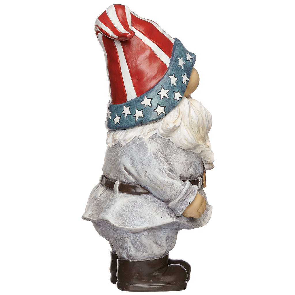Celebrate the red, white, and blue with the Patriotic Gnome Garden Statue. Featuring a festive hat patterned after the American flag and holding a flag in hand, this spirited gnome is a cheerful addition to gardens, porches, or entryways. Designed to withstand the elements, it brings patriotic charm to your outdoor décor all season long.