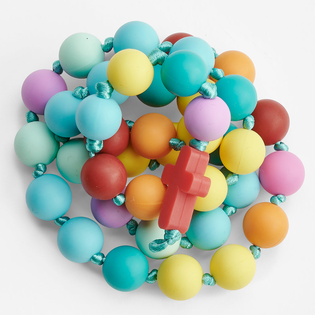 Bright, colorful, and full of meaning, this cheerful chewable necklace brings both comfort and faith into early parenthood. Featuring a bold cross inscribed with “Blessed by God,” it serves as a joyful reminder of God’s love in every moment. The vibrant colors engage little ones while uplifting parents with a message of hope. Perfect as a baptism gift, baby shower present, or everyday keepsake, it beautifully combines faith, function, and encouragement.