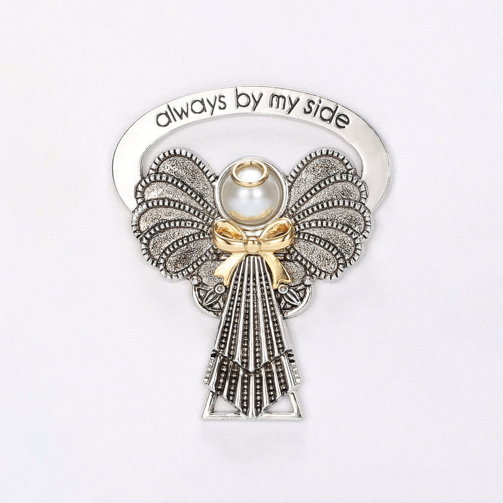 Keep a symbol of protection nearby with this Bedside Angel. Adorned with faux pearls and crystals. It features the engraved phrase "Always by My Side"‚ and includes an easel for easy display on nightstands, shelves, or desks.