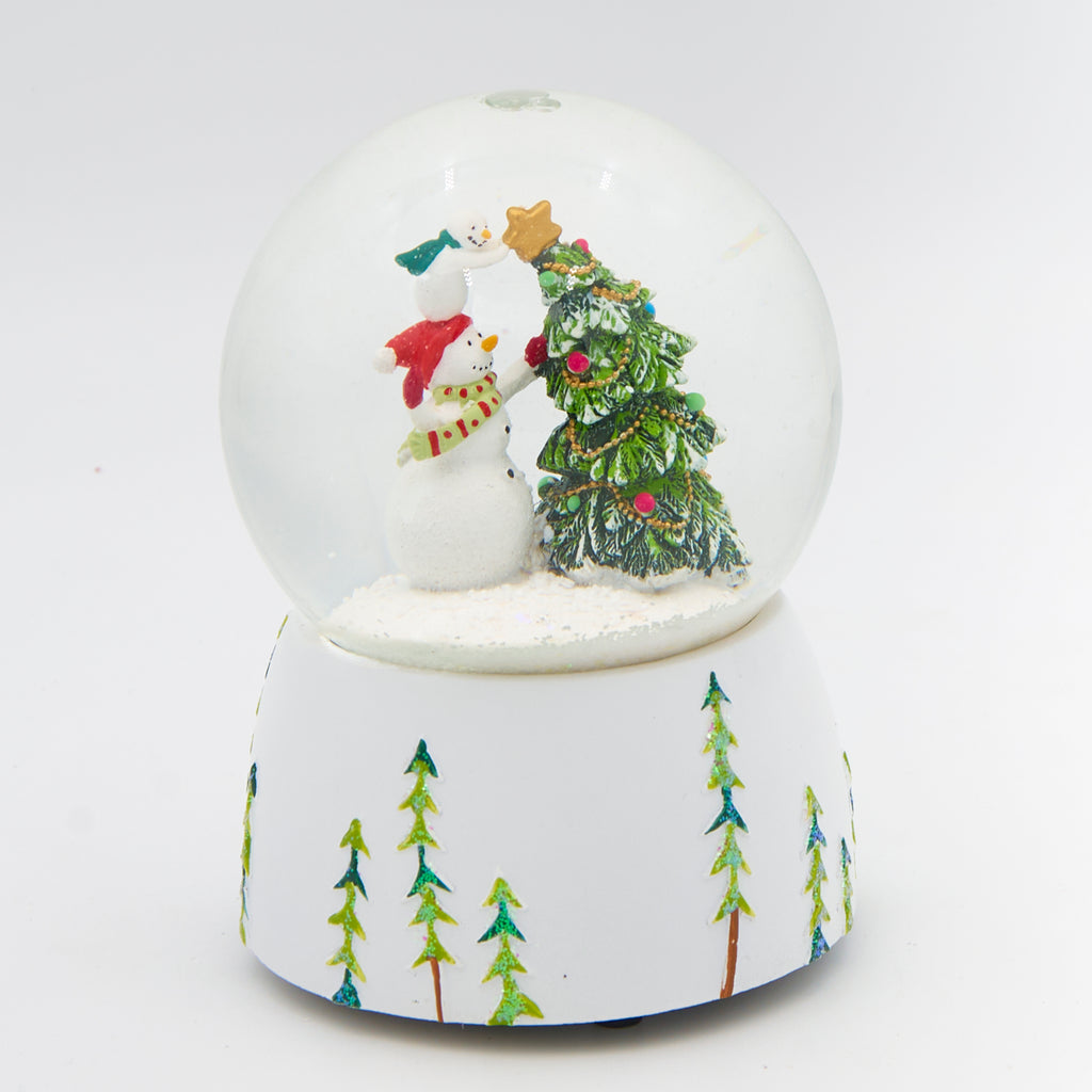 This heartwarming dome depicts a cheerful snowman, snowman child, and a decorated Christmas tree, capturing the joyful spirit of the season. This charming piece brings festive warmth and enchantment to any holiday décor, making it a delightful addition to your Christmas setting or gift collection.