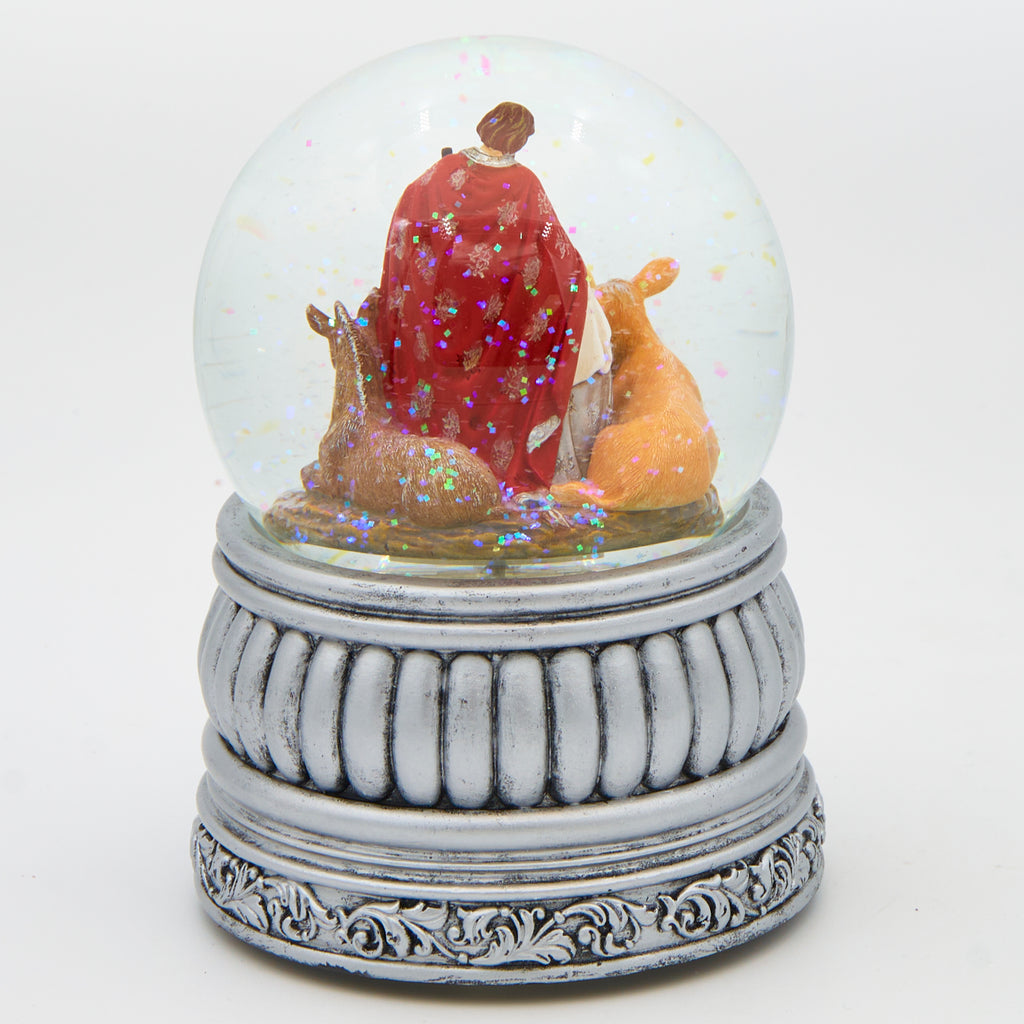 Add a touch of magic to your holiday decor with this beautiful musical swirl dome depicting the Holy Family. The intricate scene is accented with sparkling glitter that swirls gently, creating a captivating and enchanting display. Its detailed craftsmanship and festive charm make it a heartfelt addition to any nativity scene or holiday collection, evoking warmth, reverence, and the true spirit of Christmas.