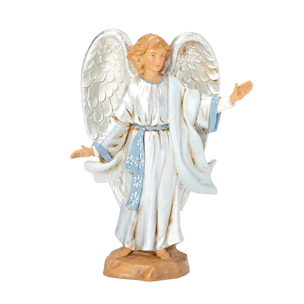 This Angel brings the Resurrection scene to life with reverence and grace. With outstretched arms and silver-detailed wings, this angel represents the heavenly messenger who greeted the faithful women at the empty tomb. Robed in white with subtle blue accents, this angel figure captures the joy and awe of the Easter miracle. Whether paired with Fontanini's Risen Christ or displayed alone, it serves as a powerful reminder of the hope and promise of the resurrection.
