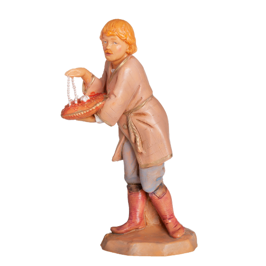 Enzo the Jeweler captures an artisan mid-task, holding a tray of tools and materials. Perfectly suited for village or market scenes, Enzo adds character and dimension to your collection. His design pairs seamlessly with the Silversmith Shop, making him a key piece for storytelling displays that celebrate craftsmanship and trade.