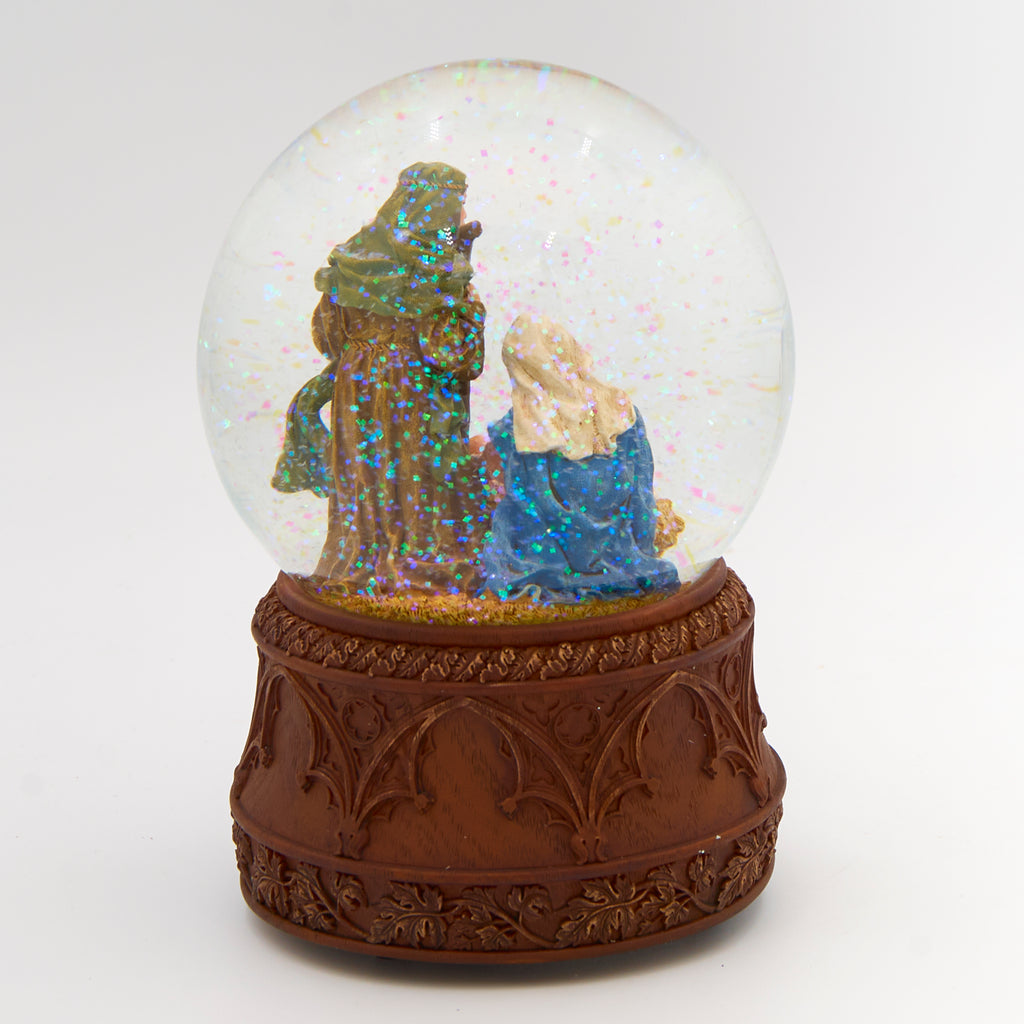 This elegant dome showcases a beautifully detailed Holy Family scene, resting atop a carved wood-style base. Delicate craftsmanship brings Mary, Joseph, and baby Jesus to life, capturing the serenity and reverence of the nativity. A timeless piece, it adds a meaningful and festive accent to your holiday décor, perfect for mantels, tabletops, or as a cherished gift for loved ones.