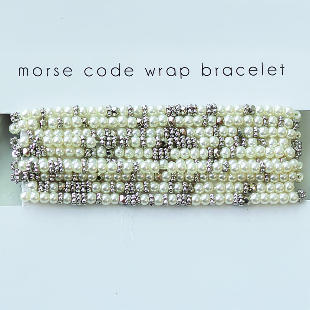 Wear your faith with grace and subtlety. The Lord's Prayer Morse Code Wrap features faux pearls, crystals, and metal beads arranged to spell out the Lord's Prayer in Morse code. Each dot, dash, and space represents a part of the sacred prayer, making it both a beautiful and meaningful accessory. Designed to be worn as a multi-wrap bracelet or a long necklace, this versatile piece is perfect for daily wear or special moments of reflection.