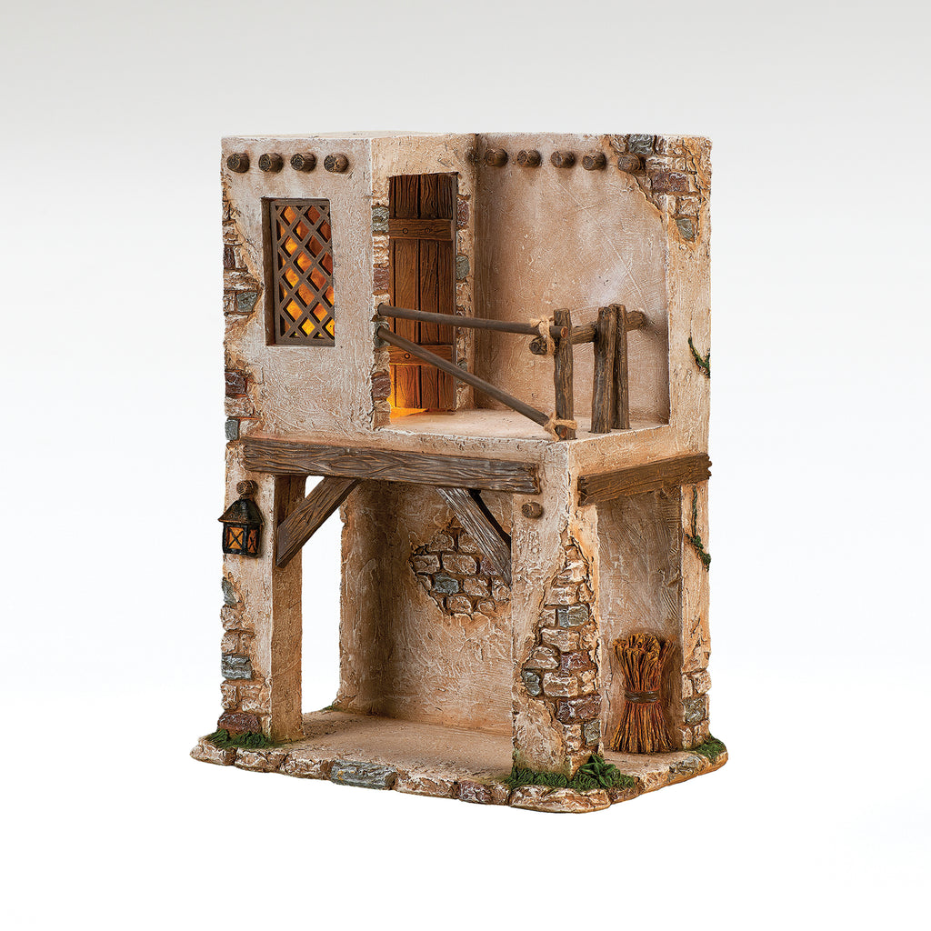 The Lighted Bethlehem Inn brings depth and storytelling to your Nativity collection. Designed with rustic stone walls, timber accents, and an upper-level balcony, it recalls the crowded city of Bethlehem during the census, when Mary and Joseph were unable to find a room in the inn. Because the city was full, there was “no room for them in the inn,” leading them to the humble stable where Jesus was born. With textured stonework, a lantern, and bundles of straw, this inn enriches your Nativity village with realism and meaning.