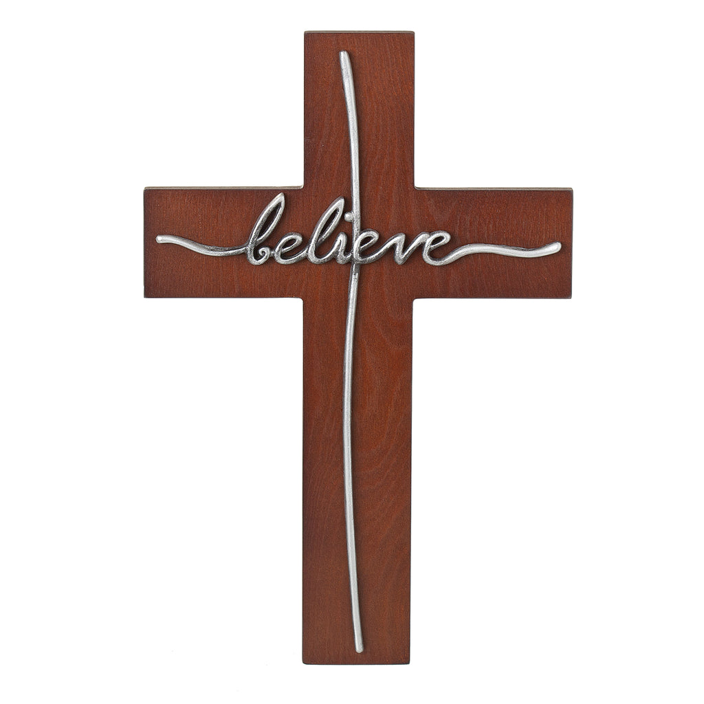 This elegant wall cross blends simplicity with powerful meaning, featuring the word "believe" in graceful metal script across a warm wood-tone background. Its clean lines and inspiring message add a touch of faith to any room, from entryways to prayer corners. Lightweight and easy to hang, it serves as a daily reminder to stand firm in hope and trust.