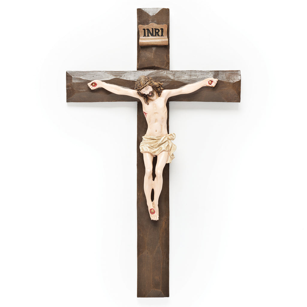 Crafted with reverence and detail, this wall crucifix features a beveled wood-look cross and a beautifully sculpted corpus of Christ. The natural tones and lifelike expression bring warmth and depth to any sacred space. Whether for personal devotion or as a heartfelt gift, this piece offers a timeless reminder of Christ's love and sacrifice. Designed to hang easily, it's perfect for prayer corners, homes, or religious education spaces.