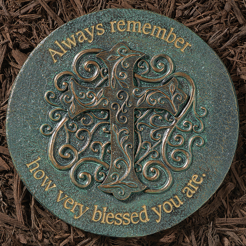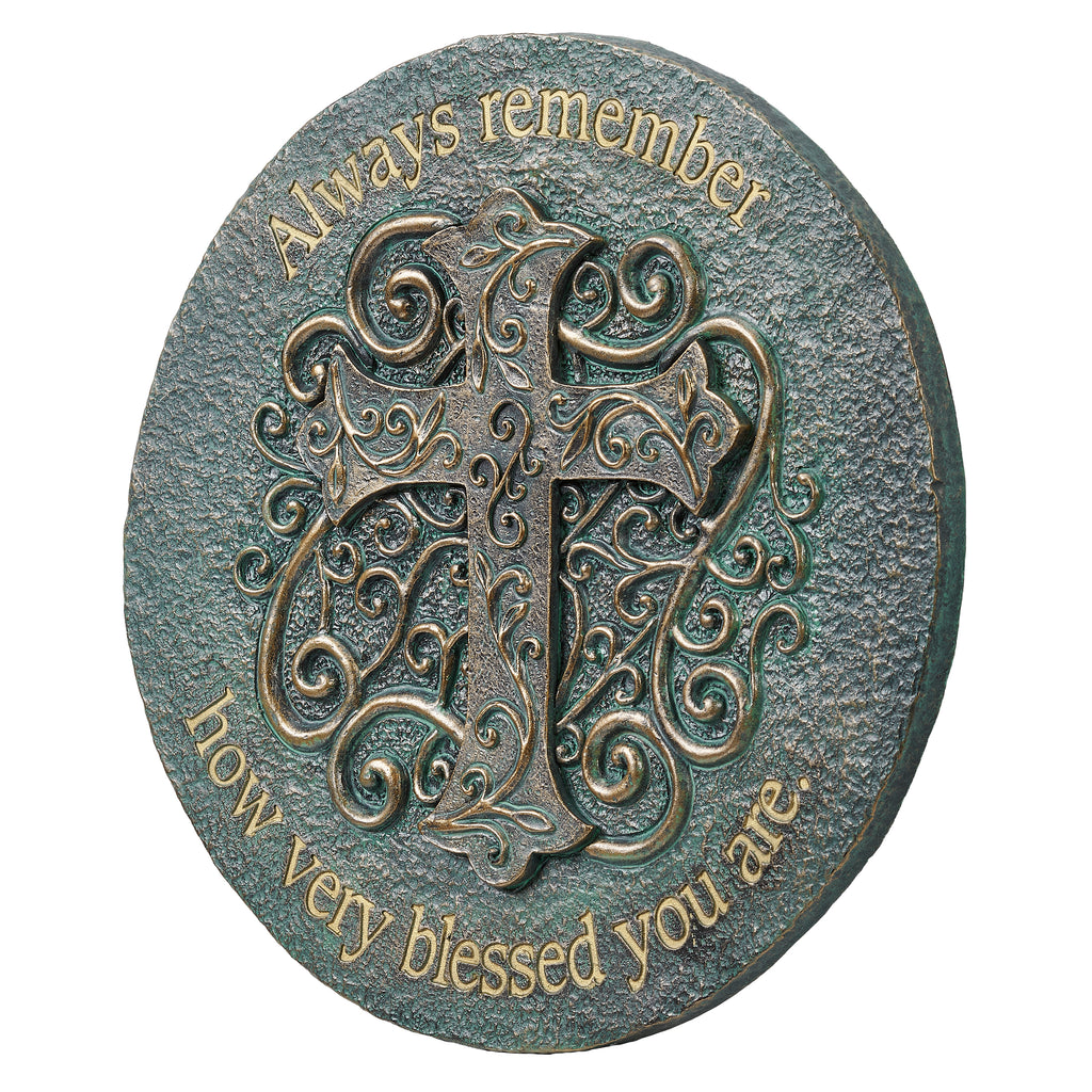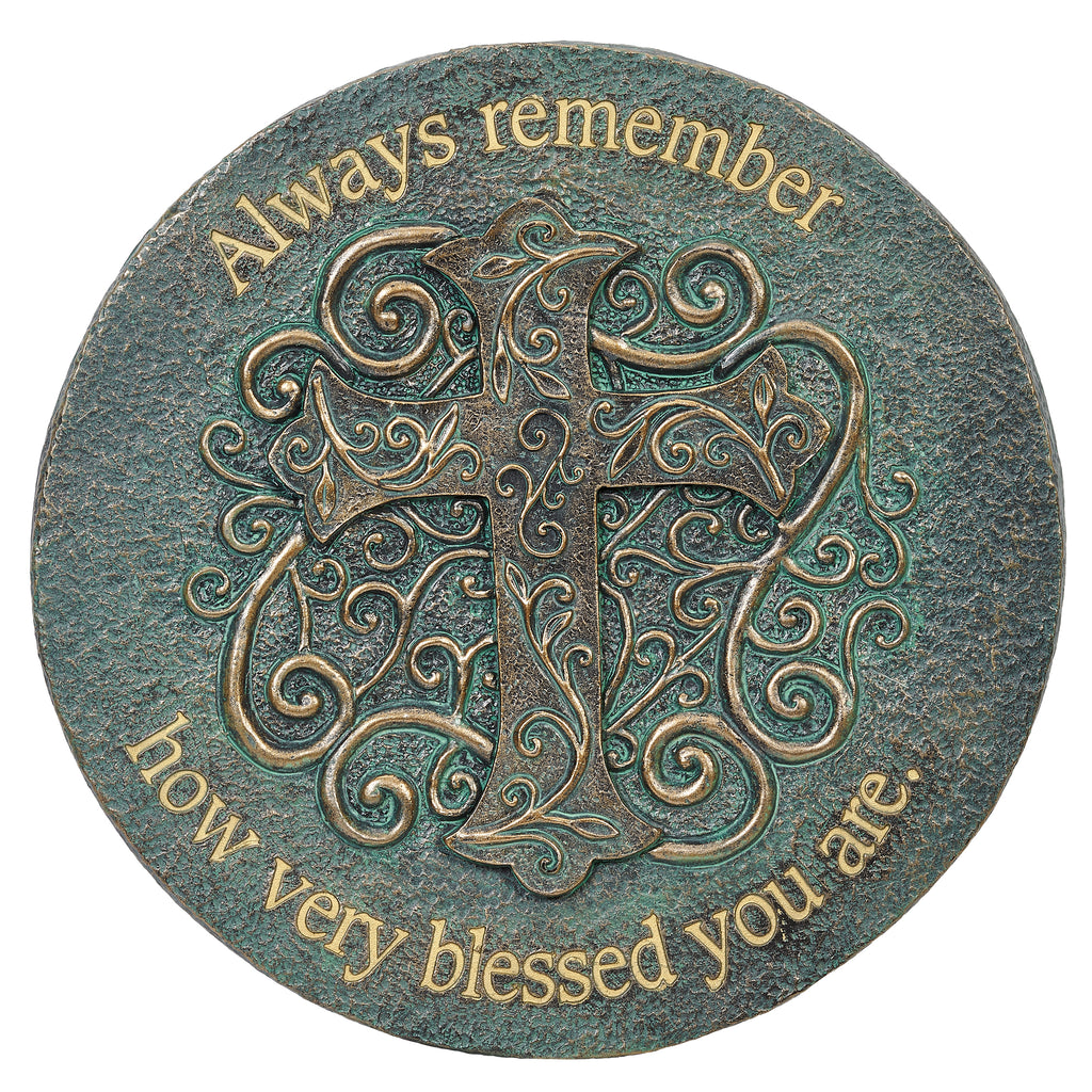 Bring inspiration and faith to your garden with the Blessed Cross Garden Stone. Featuring an ornate cross accented by elegant swirling patterns, this piece is finished in a bronze and blue patina that highlights its intricate details. The heartfelt message, “Always remember how very blessed you are,” serves as a daily reminder of gratitude and faith. Perfect for walkways, patios, or flower beds, it also makes a meaningful gift for loved ones.
