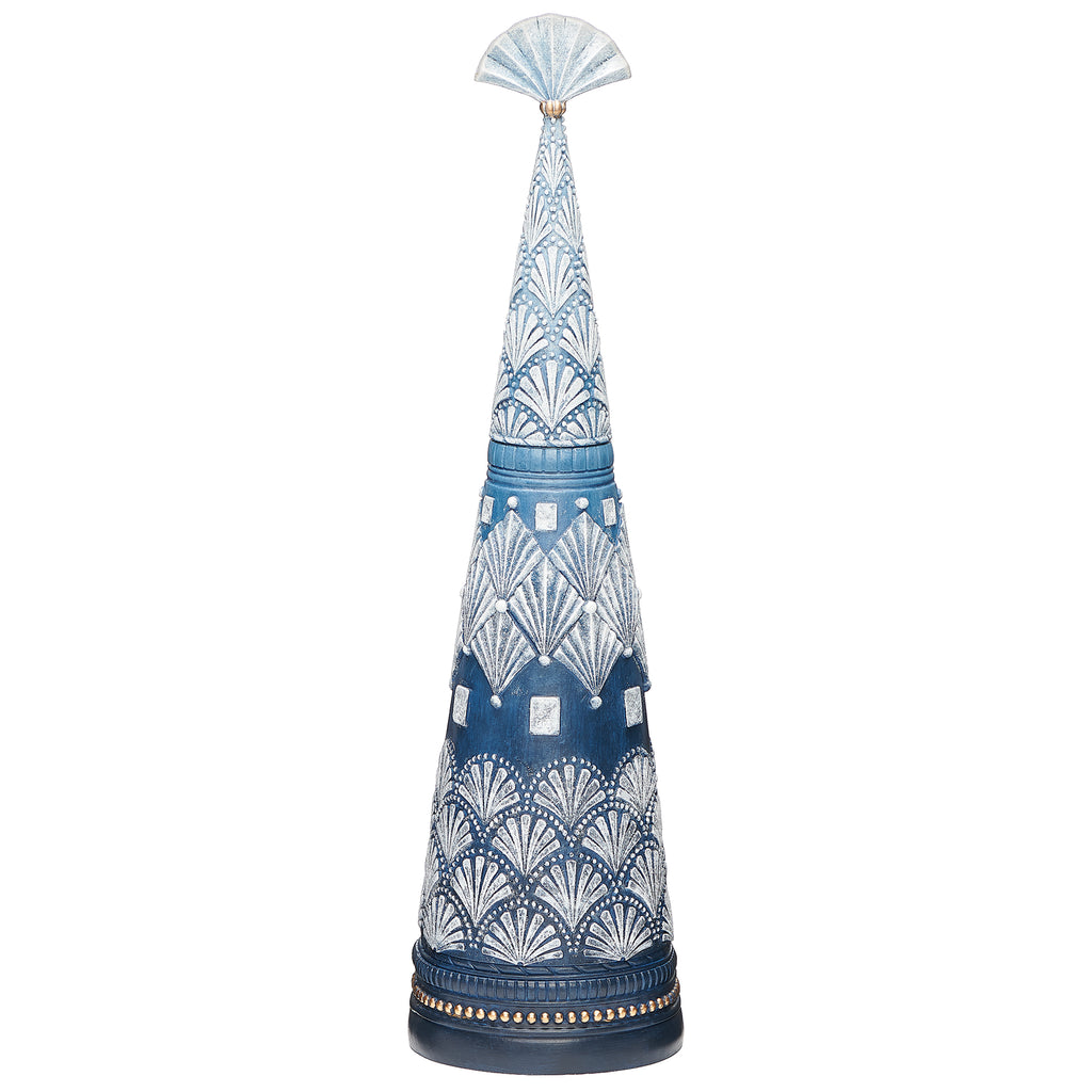 Elevate your seasonal setup with this decorative tree in striking blue and white. Embellished with shimmering glitter details, this resin piece adds a refined, wintry touch to mantels, tabletops, or entryway displays. A perfect accent for elegant holiday themes.