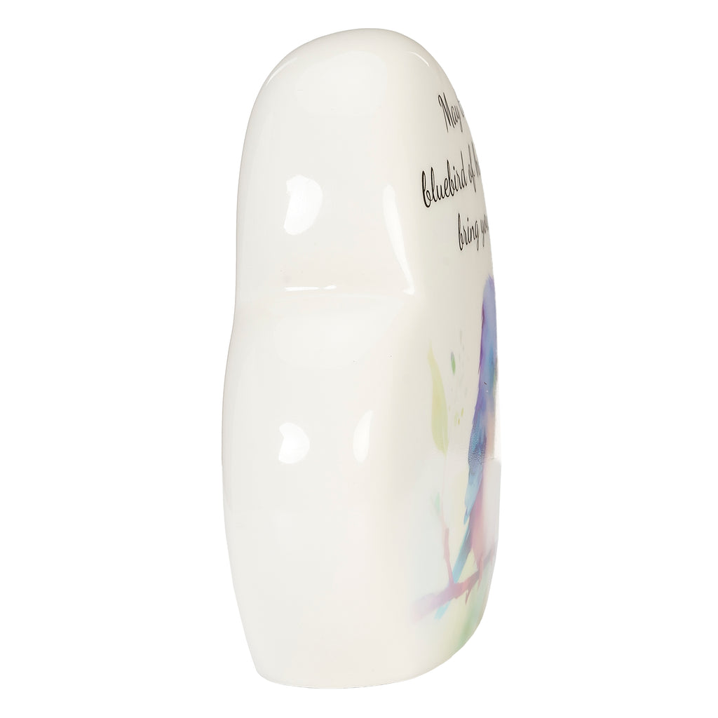 Delightful and uplifting, the Bluebird of Happiness Musical Heart is a touching reminder of joy and hope. Crafted from fine porcelain, it features a delicate bluebird in soft watercolor tones with the heartfelt inscription: “May the bluebird of happiness bring you joy.” When wound, it plays the gentle tune Clair de Lune, filling any space with peace and inspiration. Beautifully designed and meaningful, it makes a thoughtful gift for birthdays, encouragement, or simply to brighten a loved one’s day.