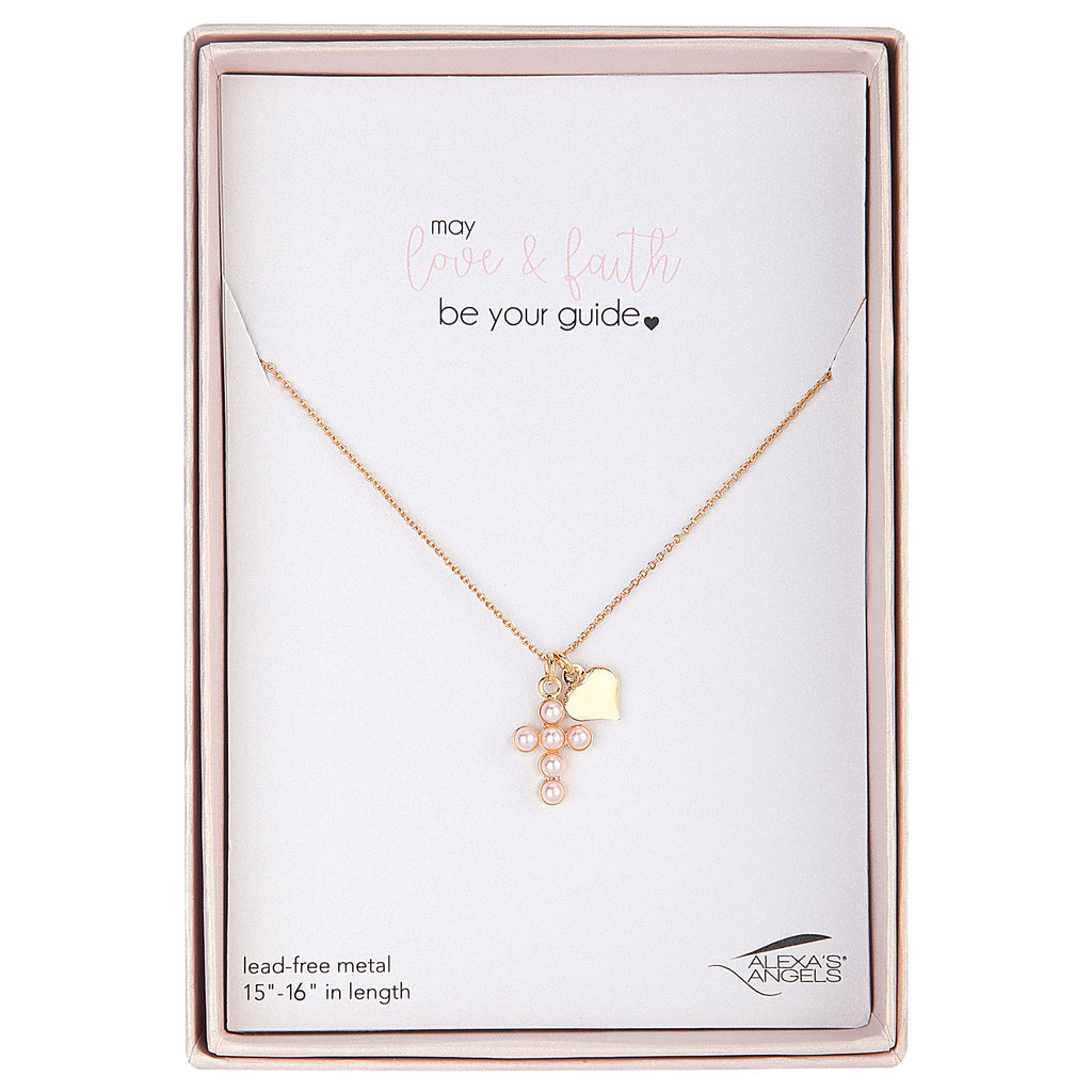 A sweet and symbolic expression of faith, the Gold Bubble Cross Necklace is thoughtfully designed for children and young adults. Featuring a delicate bubble cross charm accented with either pink or white pearls and a gold heart charm, this necklace offers a gentle reminder of love and belief. With an adjustable chain, it's perfectly sized for younger wearers and comes beautifully boxed with the sentiment: "May love & faith be your guide.”