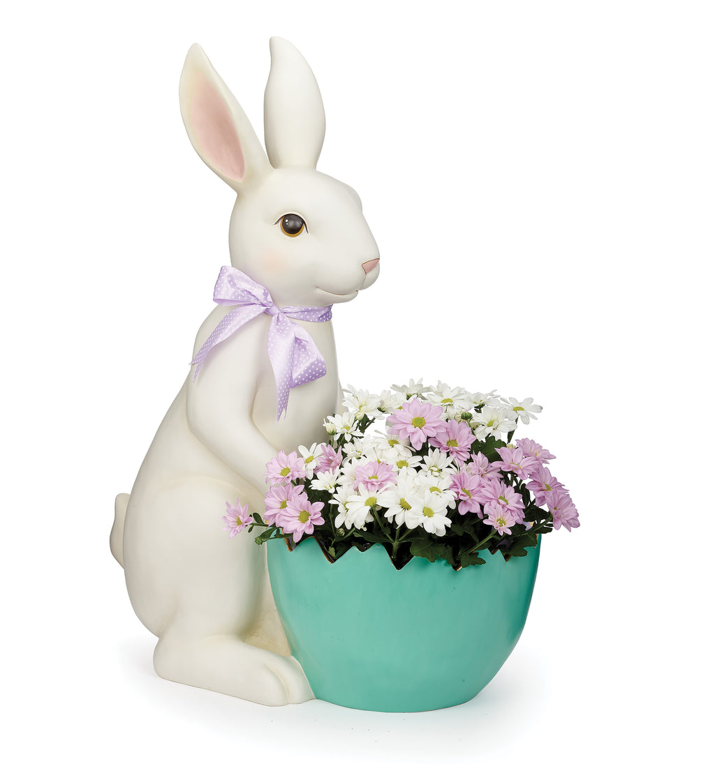 Bring a touch of springtime charm to your home or garden with the Bunny with Egg Planter. This delightful decorative piece features an adorable bunny paired with a classic egg-shaped planter, creating the perfect blend of whimsy and seasonal style. Ideal for showcasing small plants, succulents, faux florals, or spring greenery, it adds a cheerful accent to tabletops, shelves, entryways, or covered outdoor spaces.