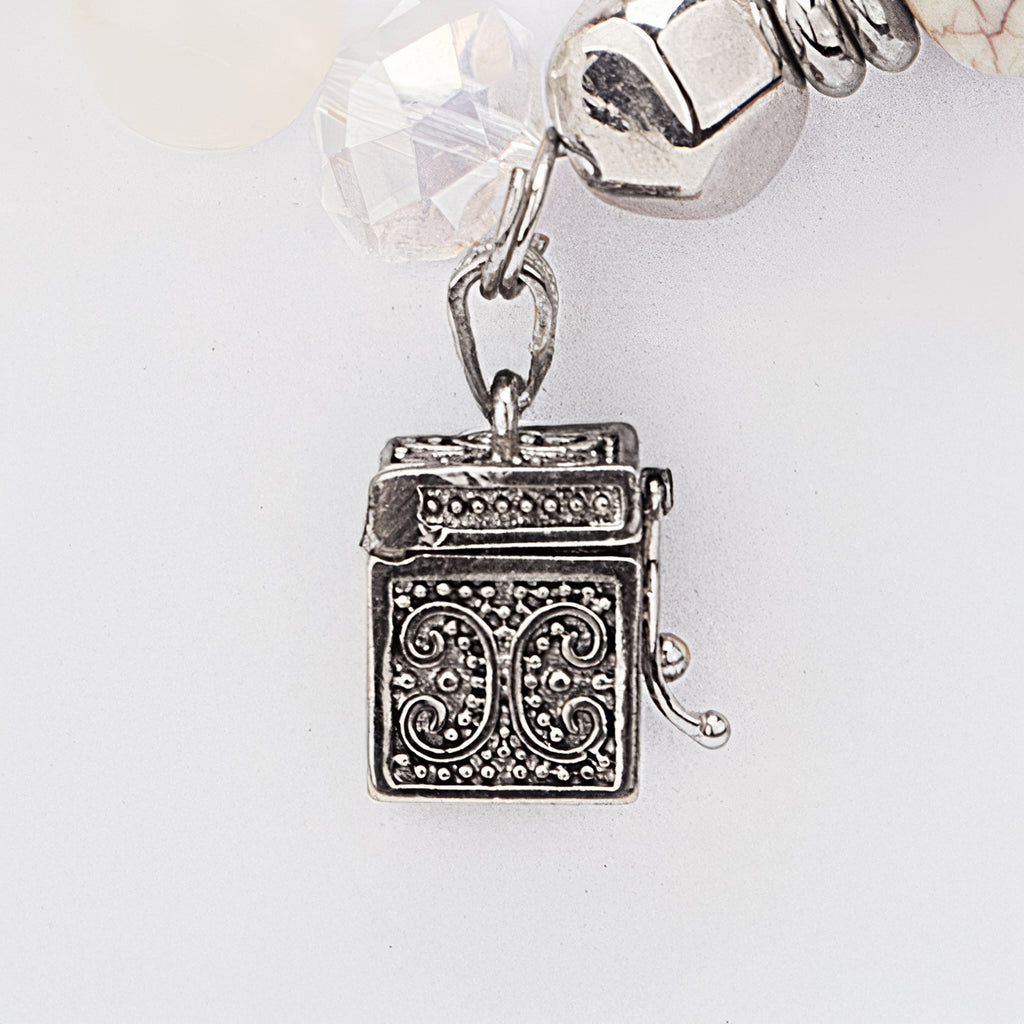 Infused with intention and elegance, the "But First, Pray" Bracelet features a delicate prayer box charm to hold a personal wish or note. A meaningful accessory for spiritual reflection, available in silver or gold tone.
