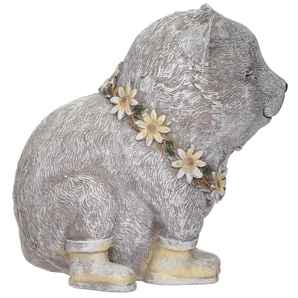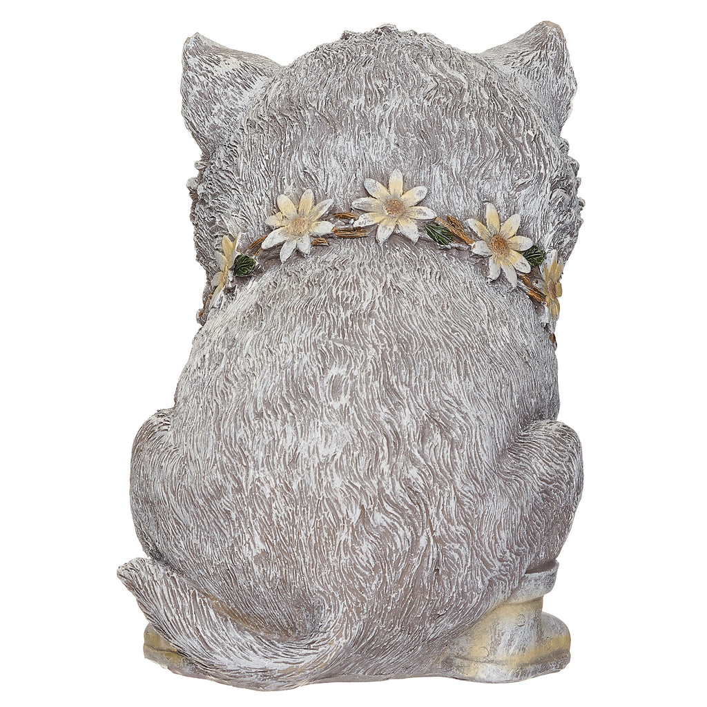 The Cat in Rain Boots from the Pudgy Pals collection is brimming with charm, featuring a smiling, round cat adorned with a daisy garland and standing in whimsical boots. With hand-painted details and a joyful expression, this figurine is a delightful accent for shelves, entryways, or garden-inspired décor.