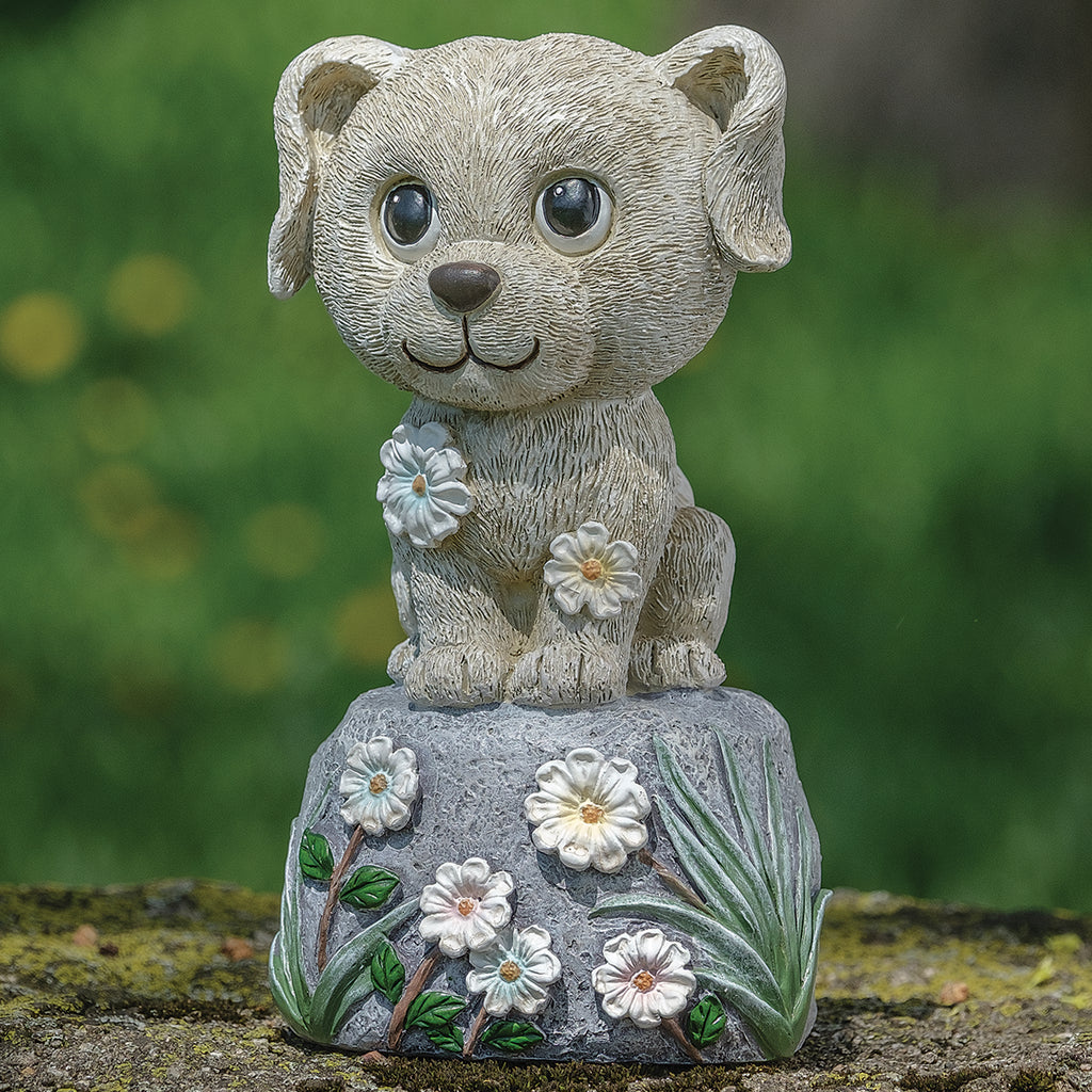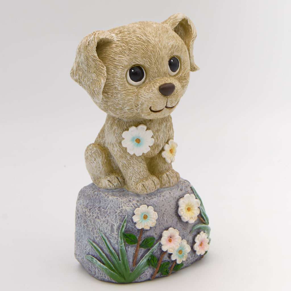 Bring warmth and charm to your outdoor space with this delightful Dog on Stone Garden Statue. Featuring expressive eyes, textured fur, and a flower-accented stone base, it’s a heartwarming addition to garden paths, patios, or entryways. Designed to withstand the elements, this piece combines durability with personality, making it a perfect decorative accent for nature and animal lovers alike.