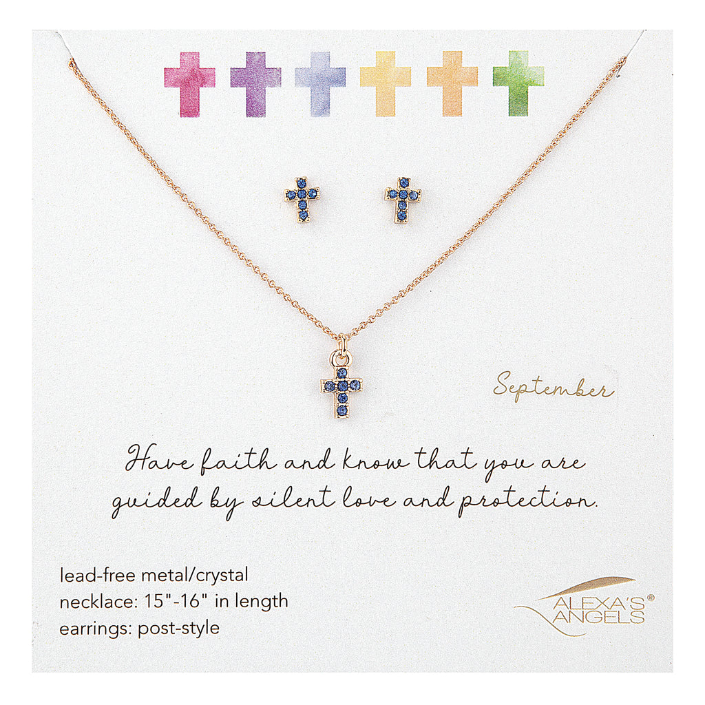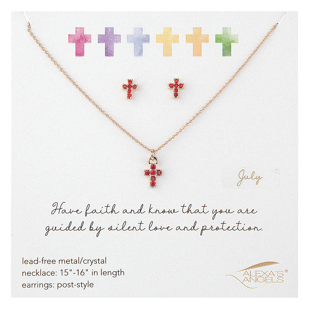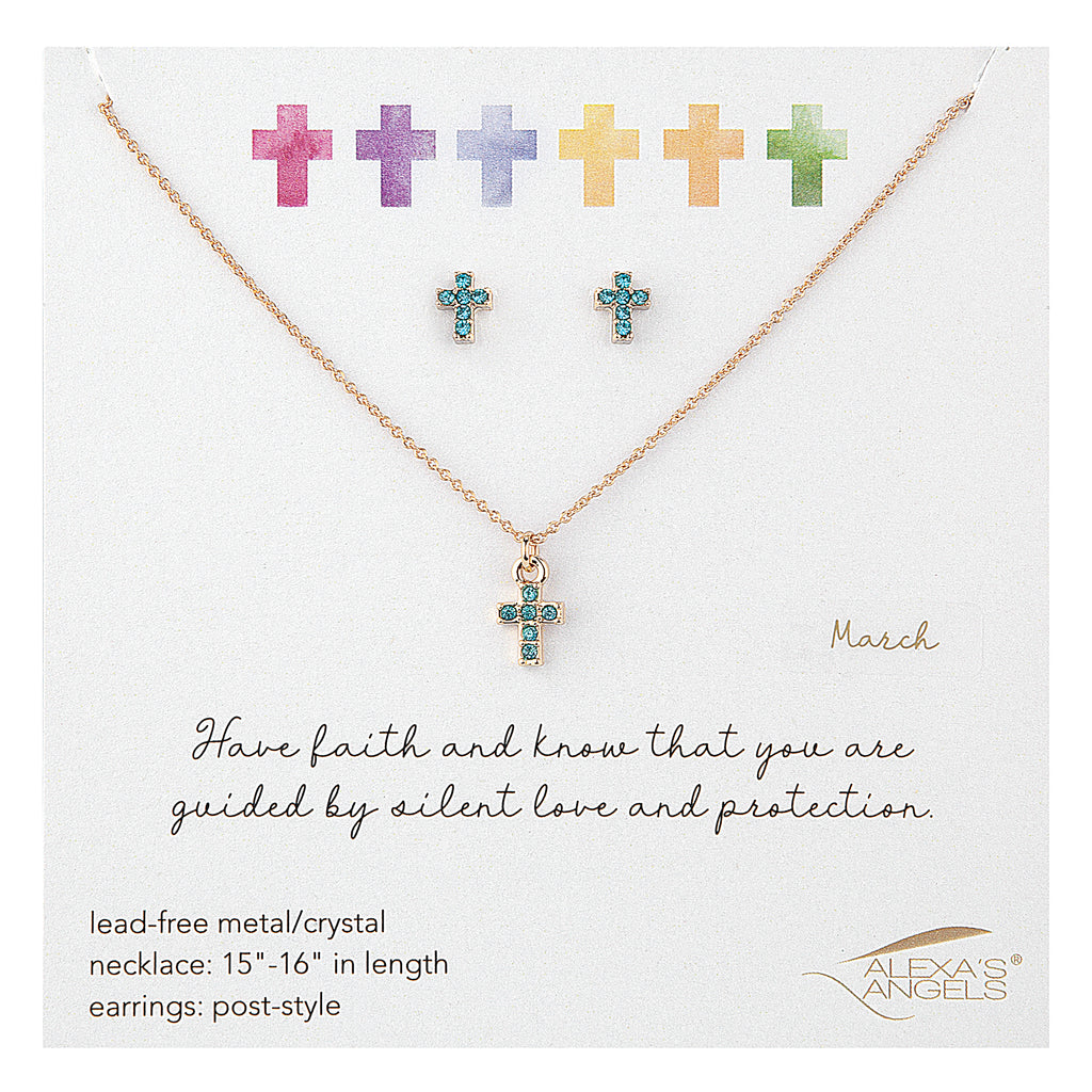 Celebrate faith and individuality with this Elegant Birthstone Cross Necklace & Earring Set, perfectly sized for children. Each piece features sparkling crystals and a coordinating birthstone accent‚ symbolizing personal meaning and divine guidance. A sweet and stylish gift for birthdays, milestones, or spiritual celebrations.