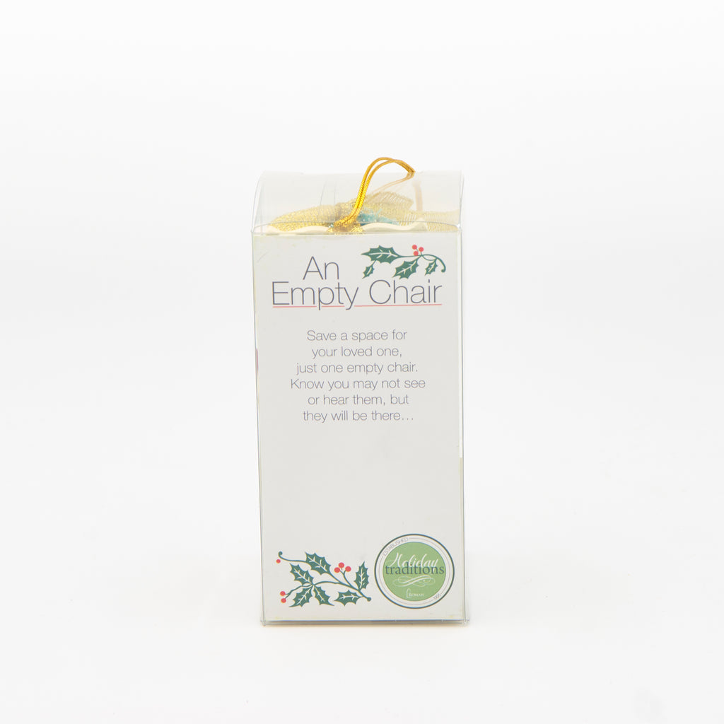 Honor loved ones this season with the Empty Chair Memorial Ornament from the Holiday Traditions collection. Made of wood with a festive wreath and golden bow, it carries the touching message: “Save space for your loved one; just one empty chair. Know you may not see them, but they will be there...” A comforting keepsake to remember those no longer with us.