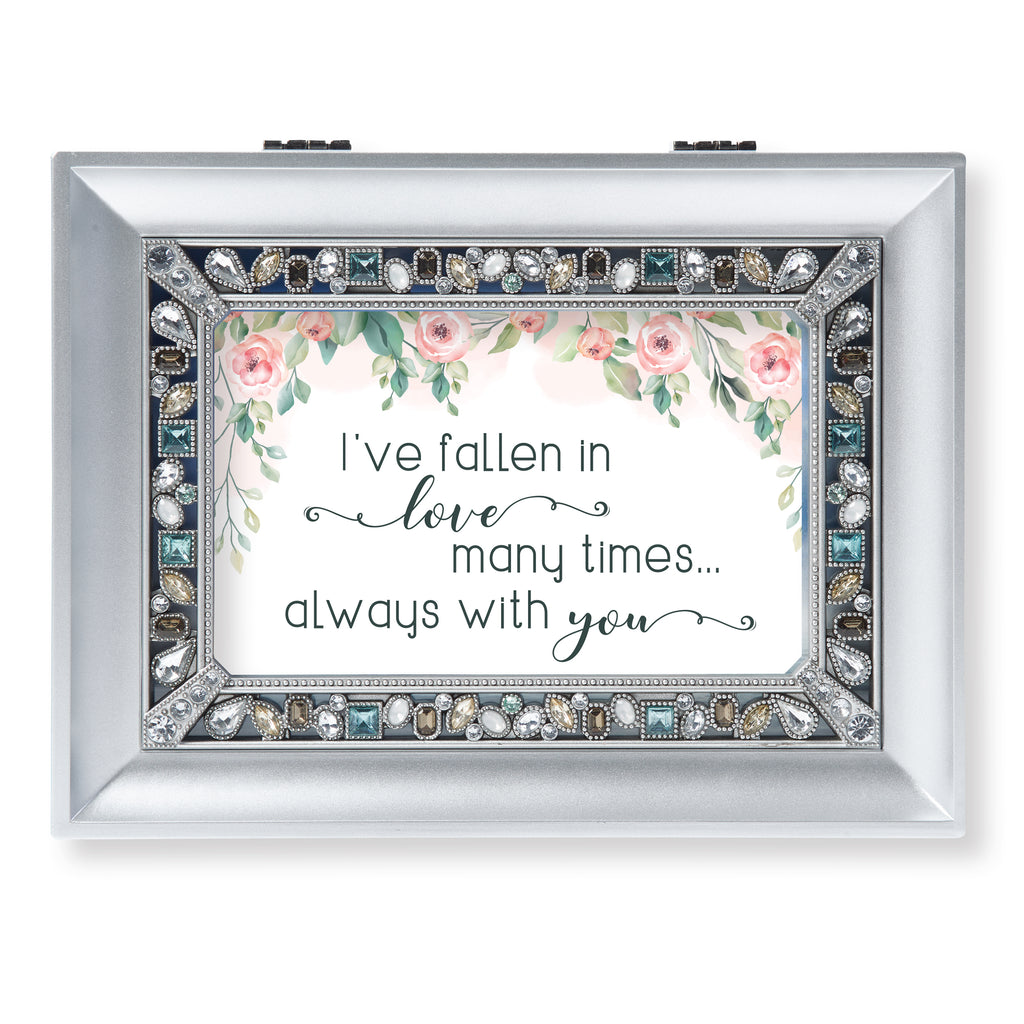 The Fallen in Love Music Box from the Love Collection is a timeless keepsake adorned with a jeweled border and delicate floral artwork. Designed with elegant detail, it makes a meaningful gift for weddings, anniversaries, or heartfelt celebrations of love.