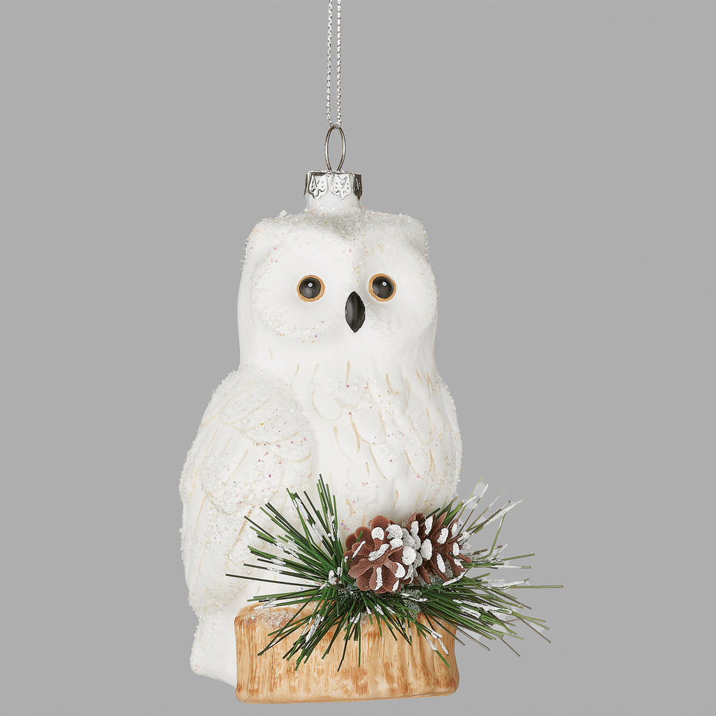 This beautifully crafted glass owl ornament brings a cozy woodland feel to your holiday tree. Featuring delicate detailing and a pine sprig accent, it adds natural charm and sophistication to any Christmas setting.