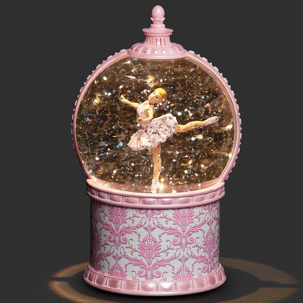 This enchanting Glitterdome captures the beauty and grace of a ballerina mid-dance, surrounded by a mesmerizing swirl of glitter that comes alive when lit. Soft illumination enhances the delicate details of her flowing tutu, while the swirling sparkle adds a magical charm that delights both children and adults. With its soothing melody and graceful movement, this keepsake makes a timeless gift for young dancers or anyone who cherishes the elegance of ballet.