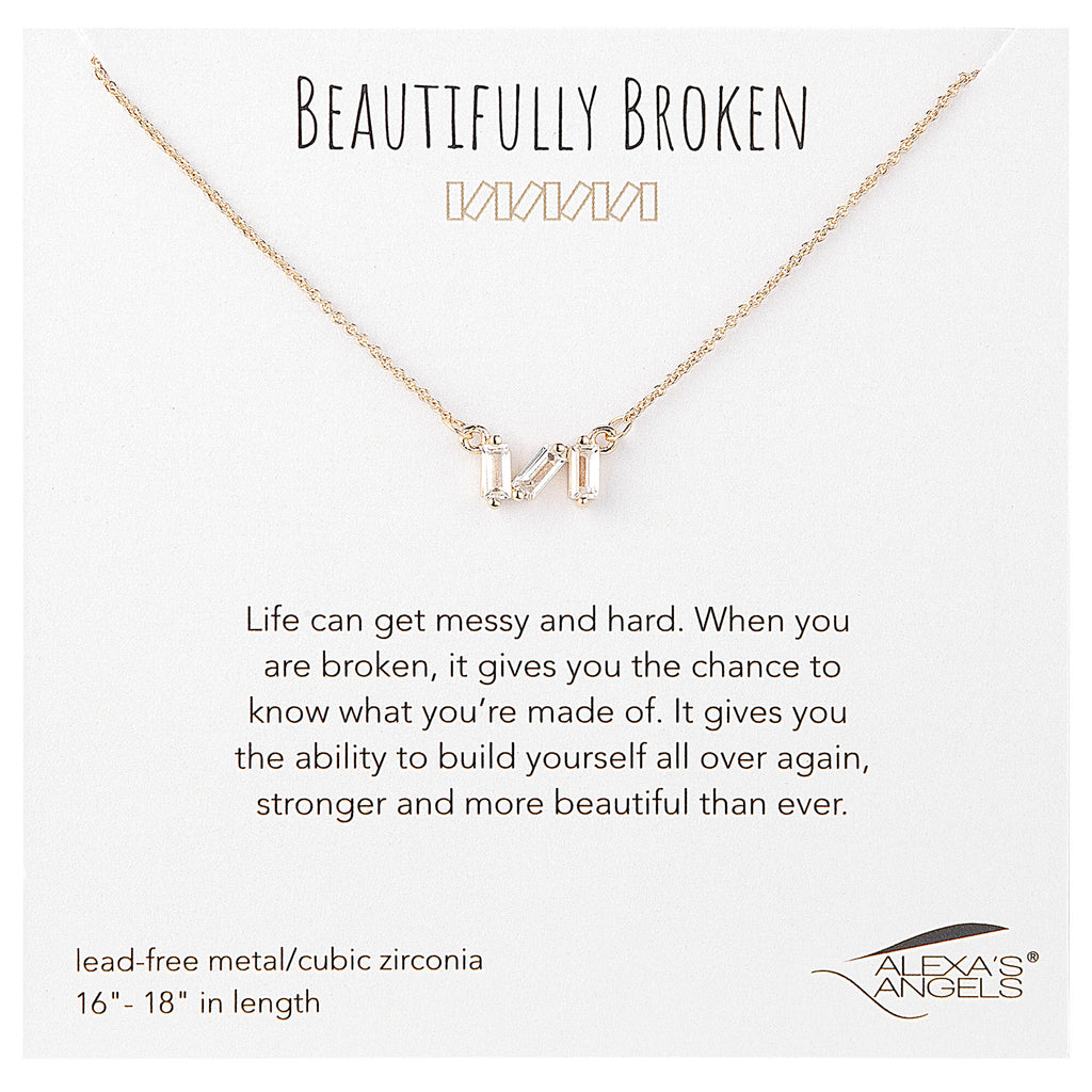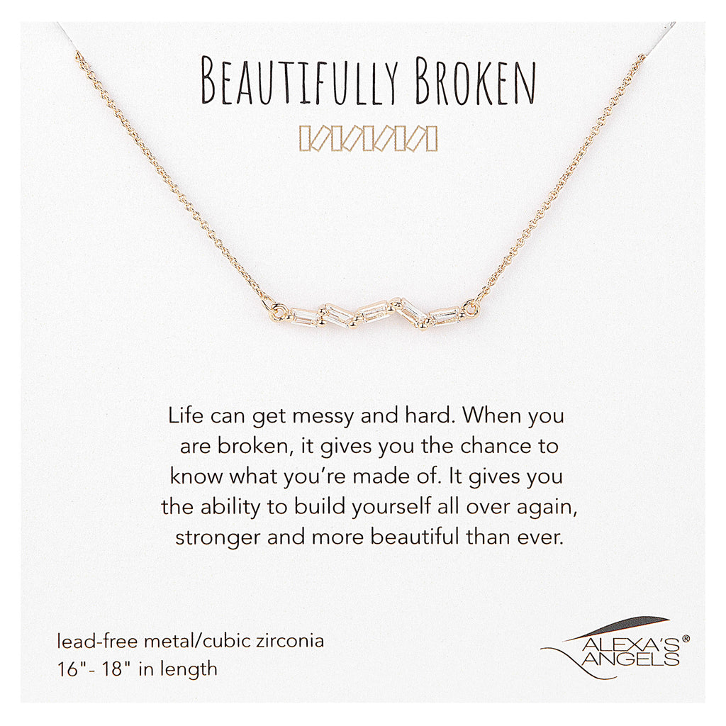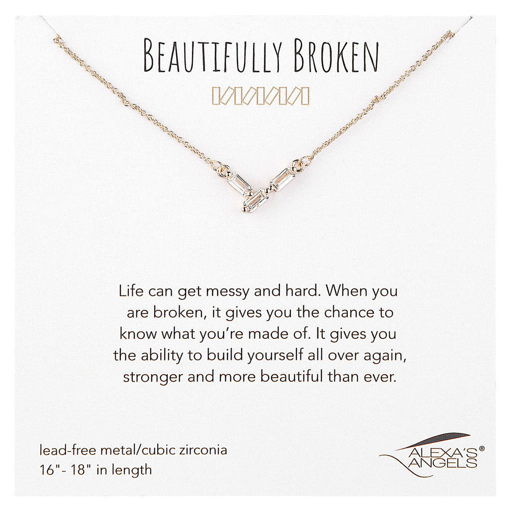 The Beautifully Broken Gold-Tone Necklace is a powerful symbol of resilience. Worn close to the heart, this elegant piece reminds us that beauty often comes through adversity. With baguette-cut cubic zirconia "cracks," each design reflects how we rebuild stronger and more radiant than before. Comes with a gift bag for easy gifting.