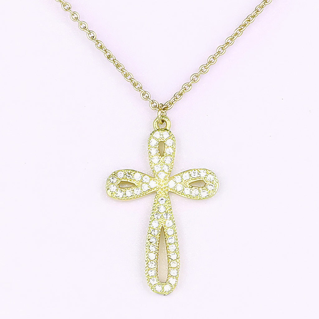 Shimmering with elegance and meaning, this Gold Plated Pave Cross Necklace is a timeless symbol of strength and grace. With sparkling glass accents and a delicate gold-tone finish, it's perfect for daily wear or a cherished gift.