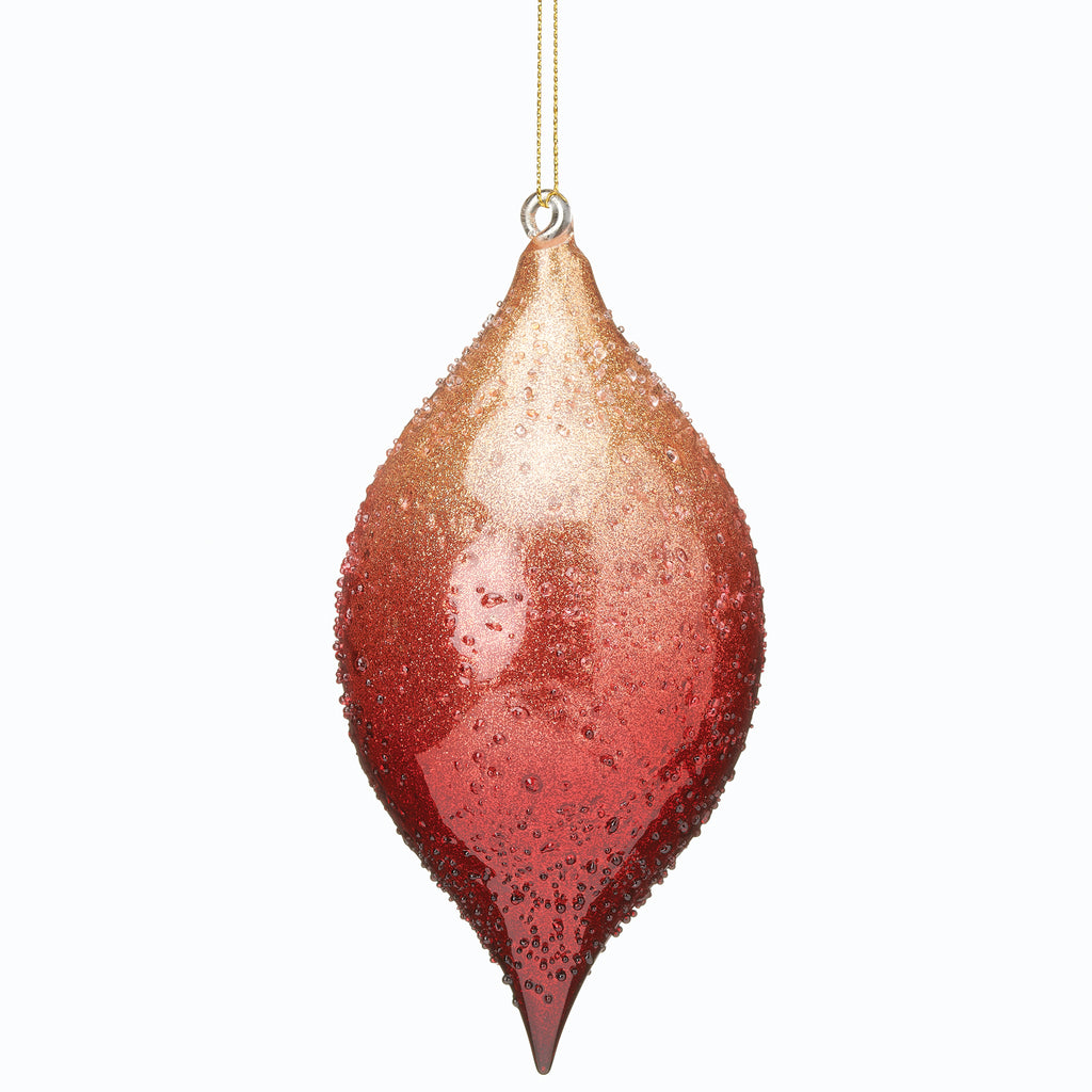 This glass ornament brings classic holiday elegance with a modern twist. The gold and red ombre effect pairs beautifully with the unique pebble-textured finish, adding depth and shine to your tree or garlands. Ideal for both home decor and large-scale displays.
