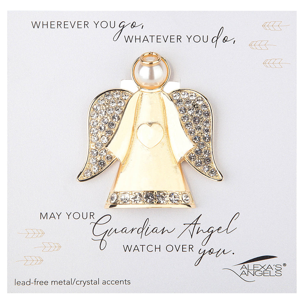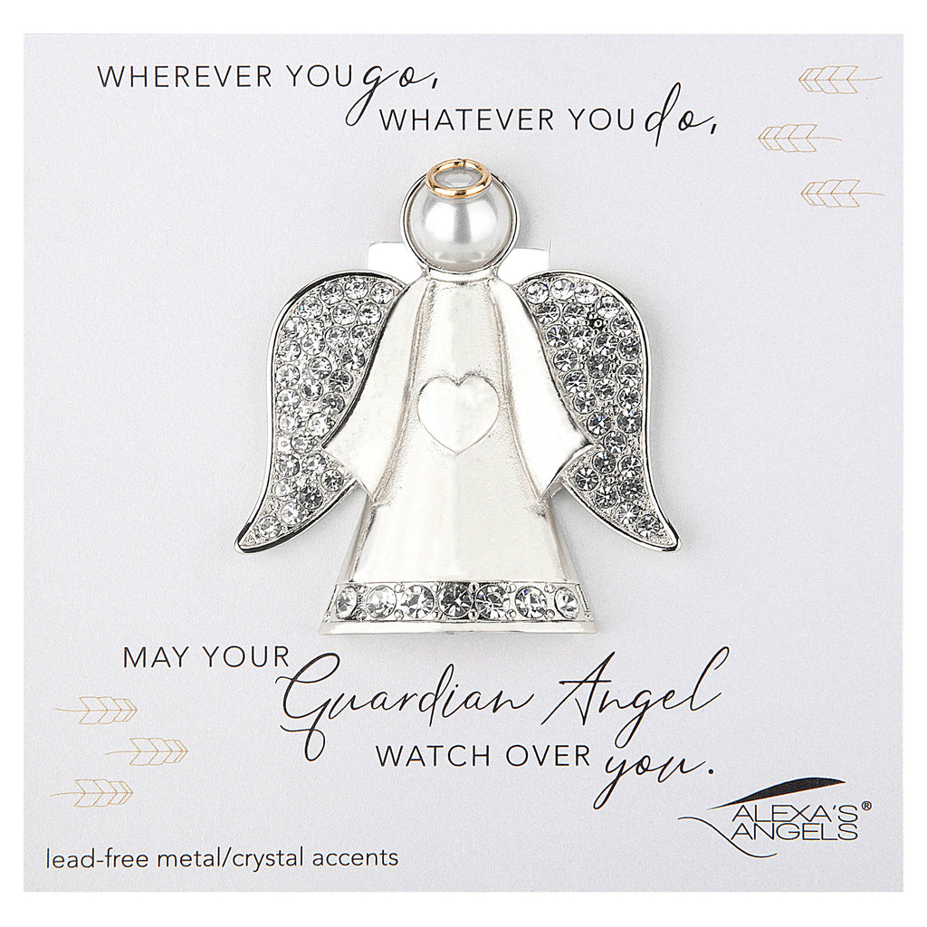 Bring comfort, faith, and grace into any space with the Guardian Angel Bedside Angel. Beautifully designed with shimmering crystal accents, this angel figurine is available in three elegant finishes: gold, silver, and gold/silver. Perfectly sized for a nightstand, desk, or shelf, this keepsake angel serves as a gentle reminder of divine protection and loving guidance. Each one comes with a heartfelt message: "Wherever you go, whatever you do, may your Guardian Angel watch over you.”