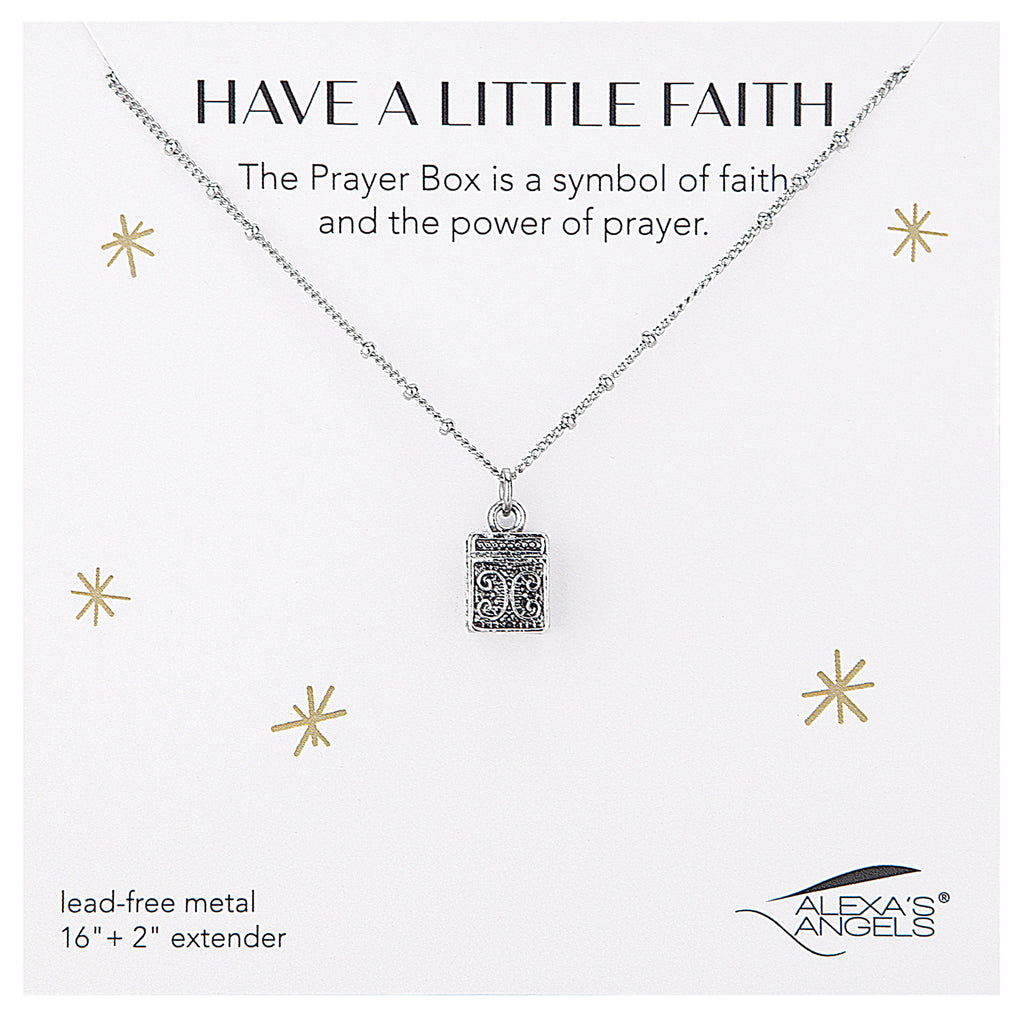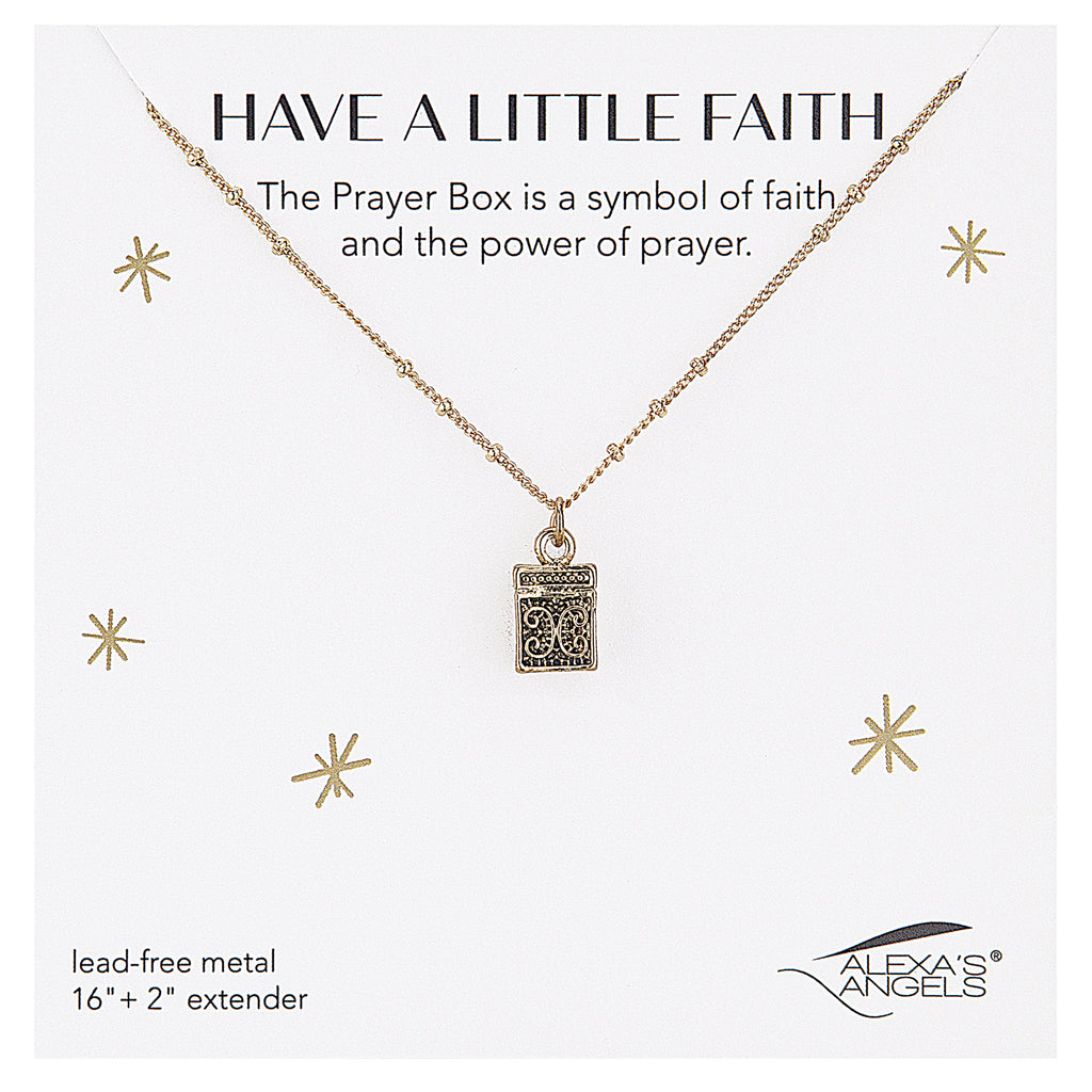A gentle symbol of devotion and hope, the "Have a Little Faith" necklace features a beautifully crafted prayer box pendant‚ representing the strength of faith and the quiet power of prayer. Whether gifted to uplift a loved one or worn close to your own heart, this necklace serves as a meaningful reminder to trust, believe, and carry faith wherever you go. Available in your choice of radiant gold or classic silver tone.