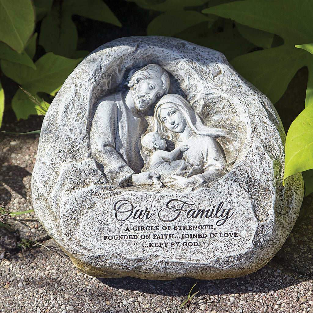 This Holy Family Garden Stone offers a heartfelt message of faith, love, and unity. Featuring a beautifully carved image of the Holy Family and the inscription: "Our Family‚ a circle of strength, founded on faith, joined in love, kept by God." It's perfect for gardens, walkways, or sacred spaces.